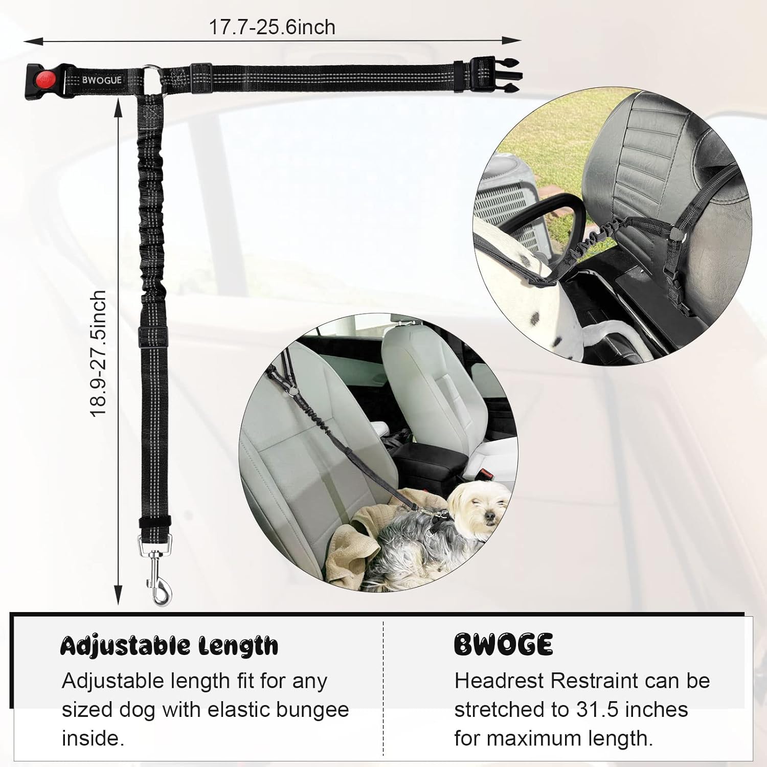 • ADJUSTABLE LENGTH: Dogs come in different sizes and weights. With buckle on the straps and the elastic bungee inside, The BWOGE Headrest Restraint is adjustable between 18.9-27.5 inches and can be stretched to 31.5 inches for the maximum length. The circle can be adjusted from 17.7 inches to 25.6 inches.You can easy to adjust the dog leash to the suitable length to keep your pet in a safety state.
