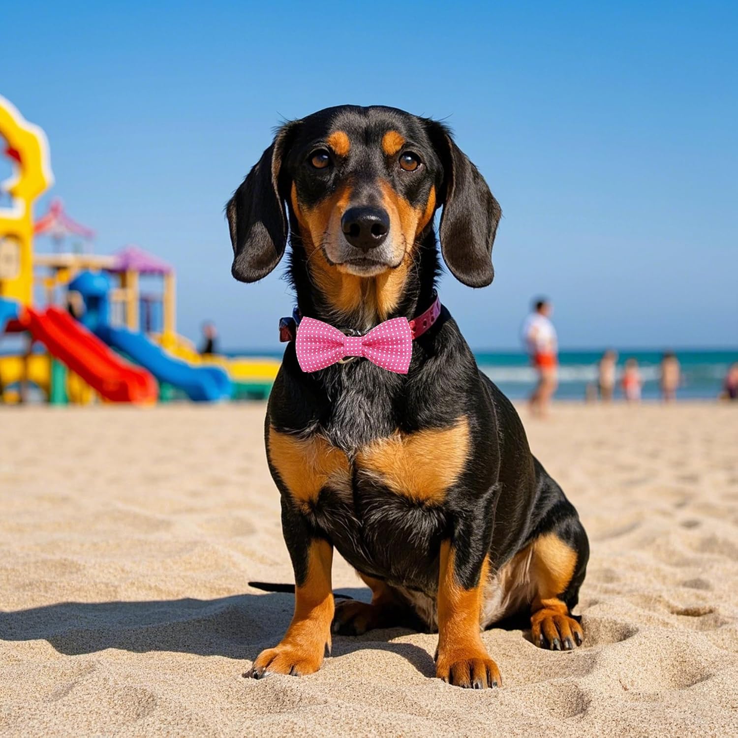 • The collar charms bowties is about 3.8*2 inches. They fit for small and medium dogs, puppies, cats, rabbits and pigs well. The elastic rubber bands on their back usually fit for 1.5-3cm (0.59-1.2inches) wide collars. They can be slipped on collars easily.