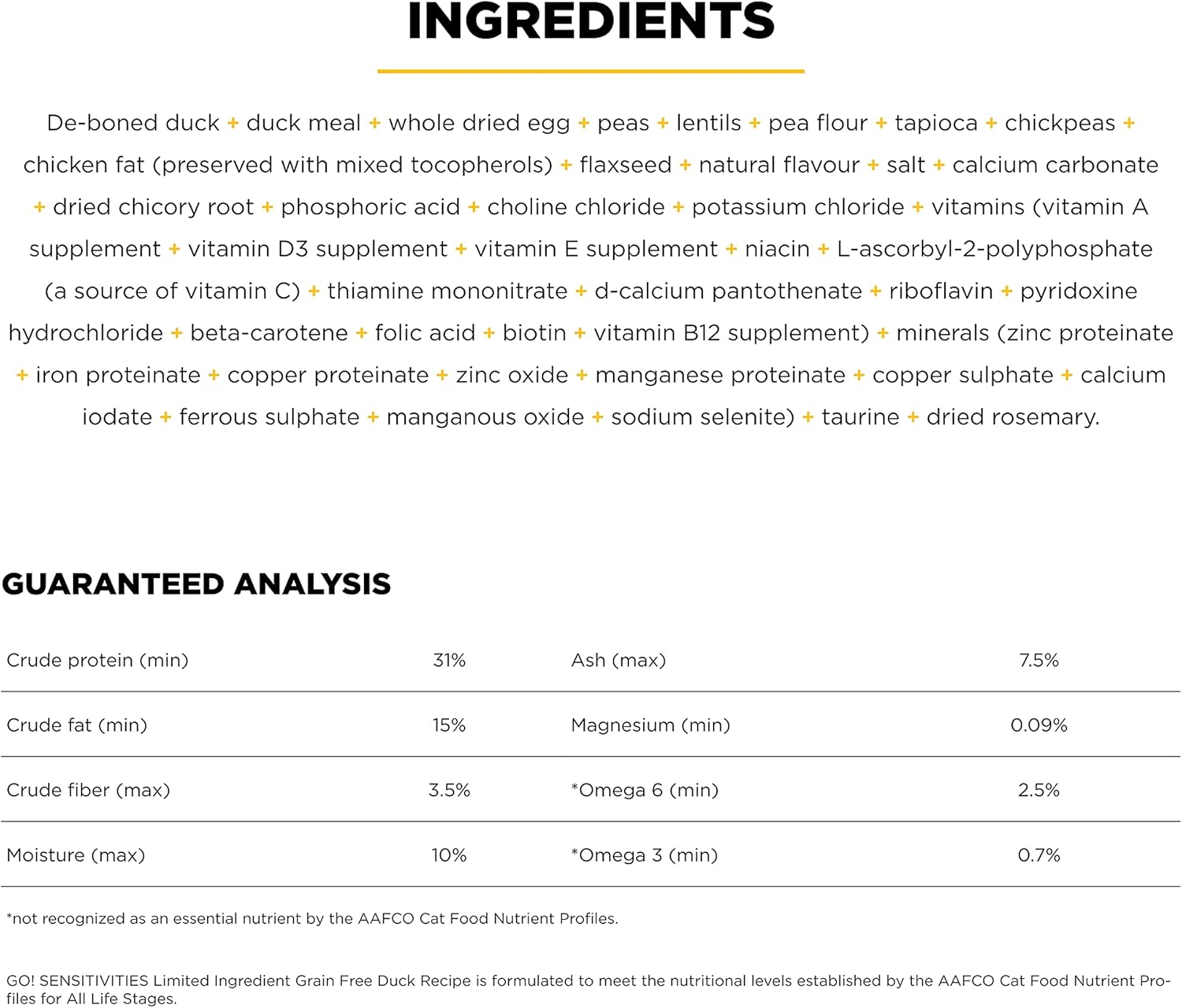 • WITH NATURAL INGREDIENTS + REAL DUCK: Grain free cat food with cage-free de-boned duck as the first ingredient, prebiotic fiber from dried chicory root to support sensitive stomachs and zero by-product meals or artificial preservatives.