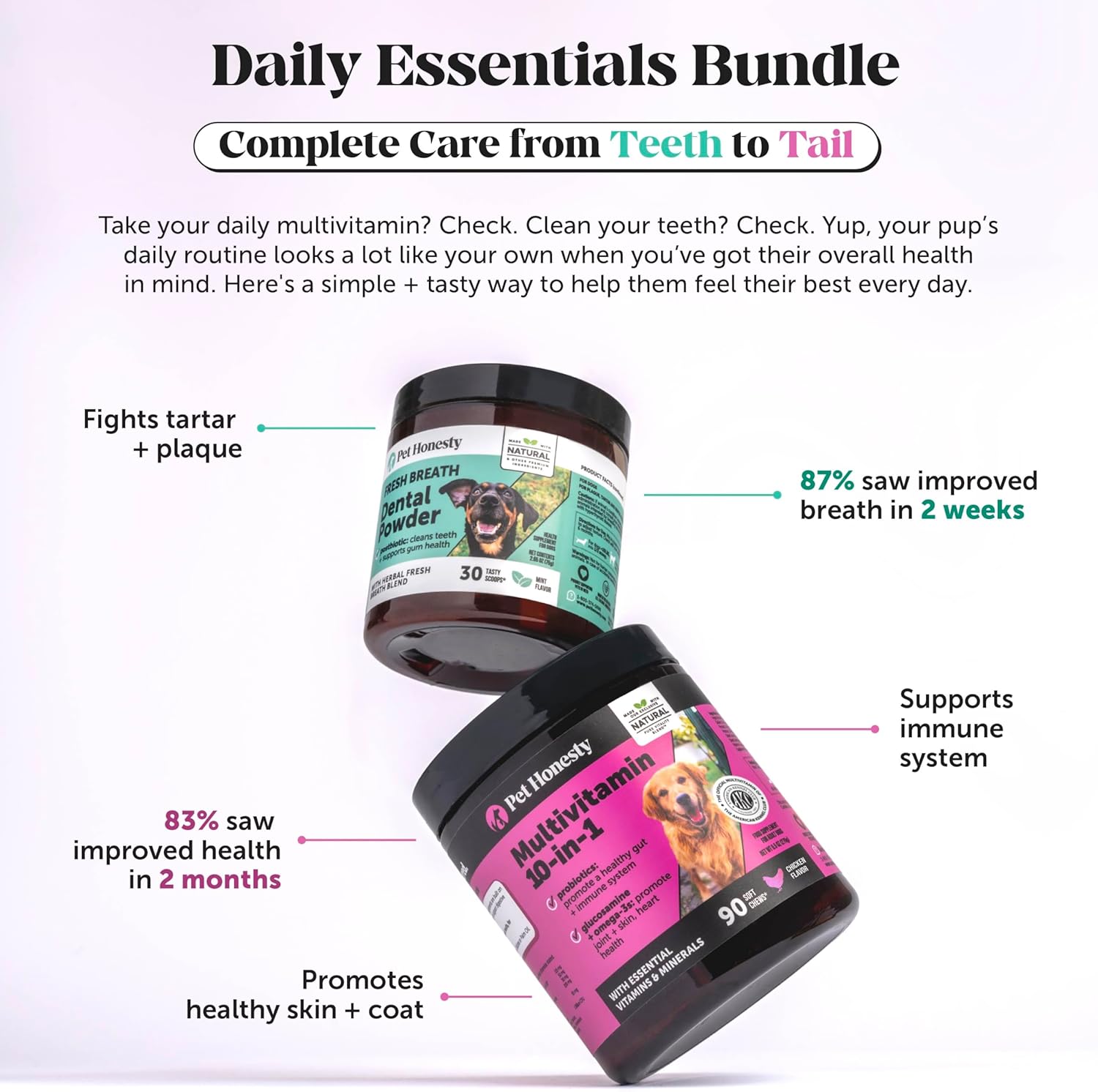 • Pet Honesty Pledge: A taste your pet will love & results you can trust. Made with the most effective natural + other premium ingredients. Formulated without corn, wheat, or soy. No artificial preservatives, colors, or flavors.