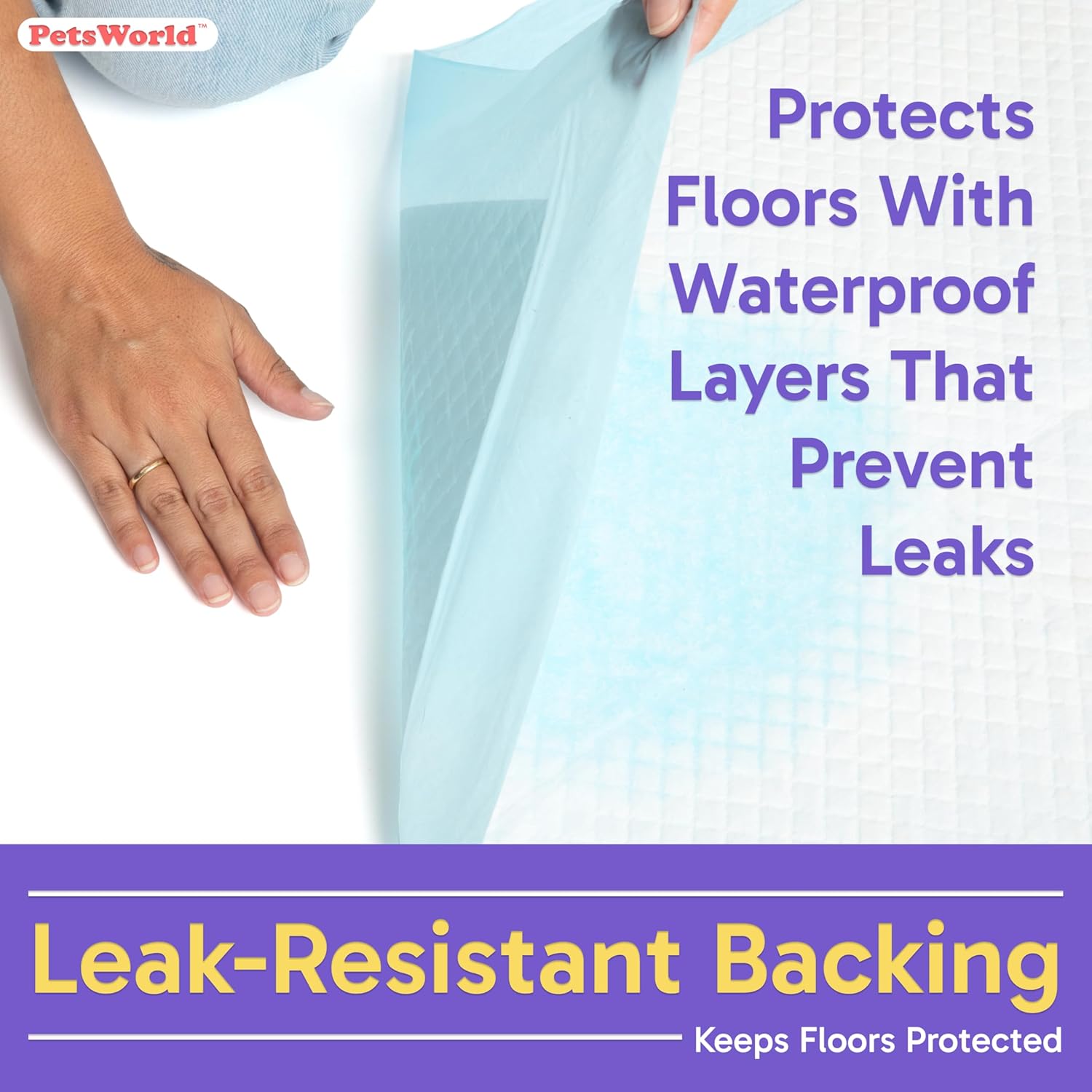 • Ultra-soft top layer: Petsworld extra large puppy pads have a soft and comfortable top layer that offers your furry friend a great place to relax and play. The top layer is also super absorbent to quickly soak up liquids and prevent messes from spreading.