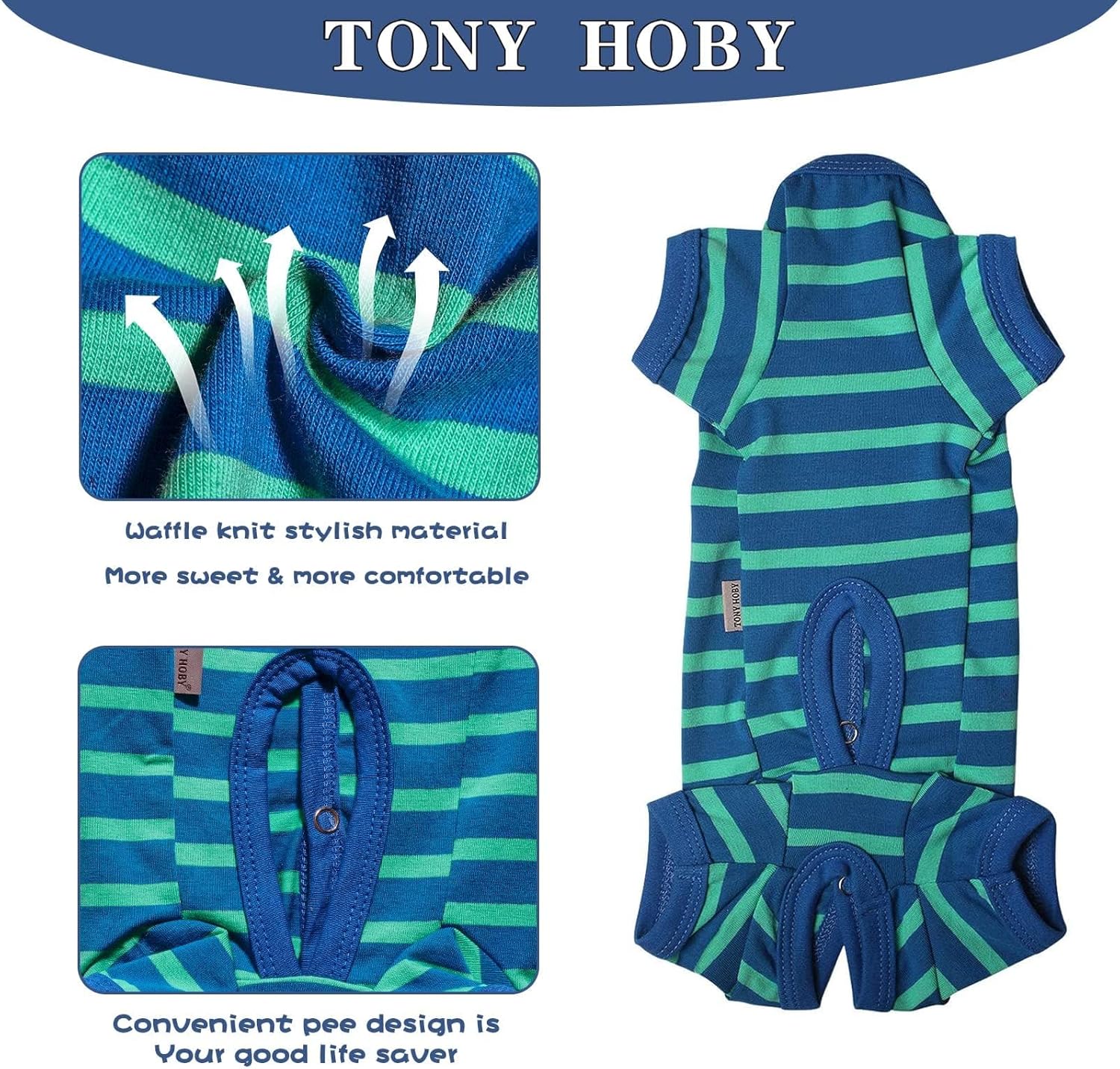 • 【Unique Design】-TONY HOBY Female/Male Dog Pajamas has a unique design for men and women, focusing on protecting the dog's abdomen; and using metal buttons, easy to wear; unique four-leg design, elastic waist, and with bright stripes, beautiful and fashionable.