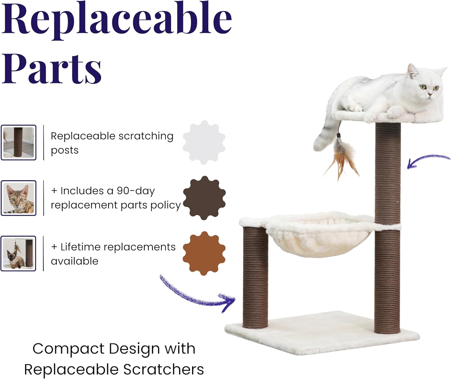 • Replaceable Parts: Keep your cat tree looking like new with easy-to-order replacement parts. Eligible parts are scratching posts, beds, and cushions. Contact us for more information!