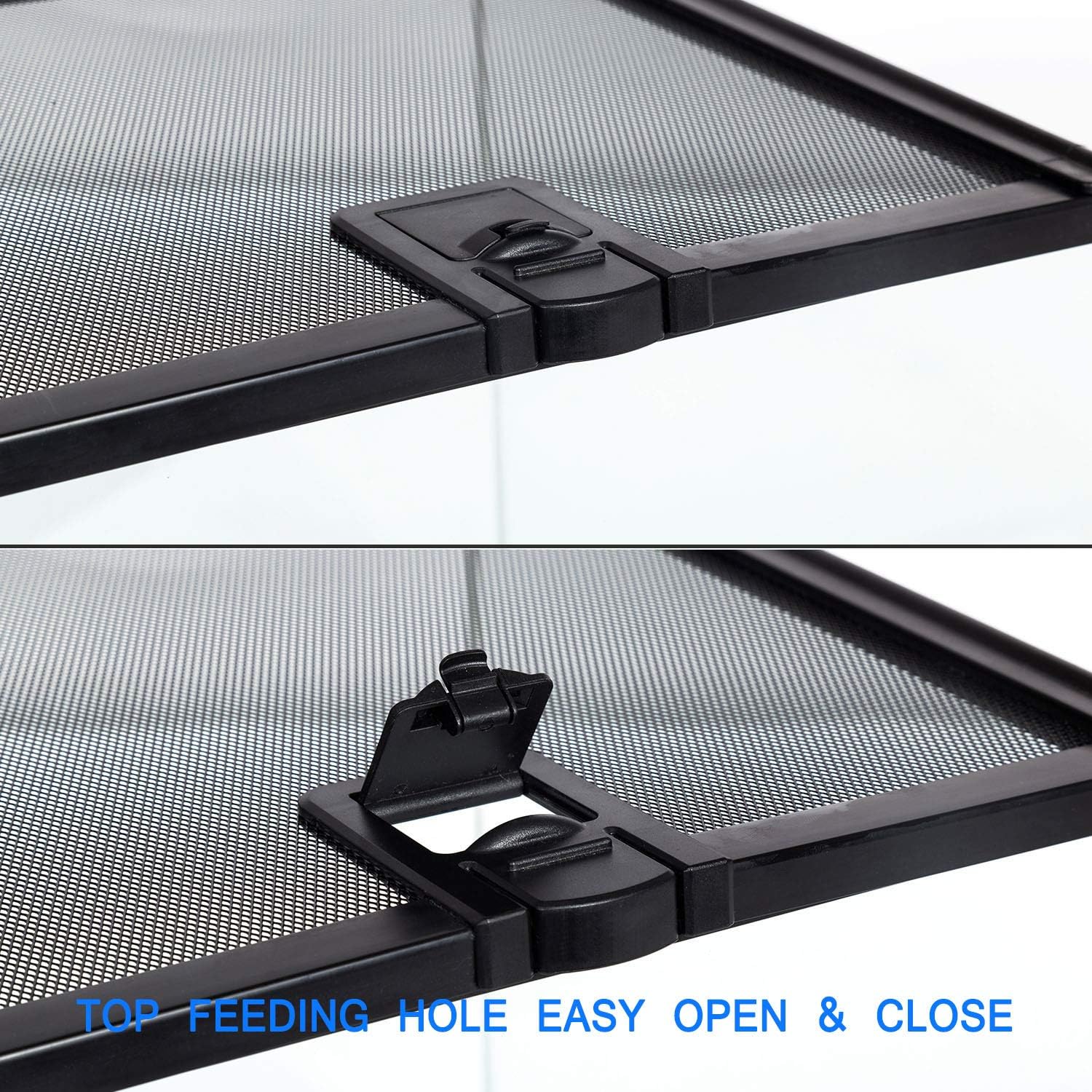 • 【Compact Design & Top Feeding】Compact and flat-packed design reptile tank with top opening to prevent escape and easy feeding. With a transparent PVC tray in the bottom for holding water and substrate