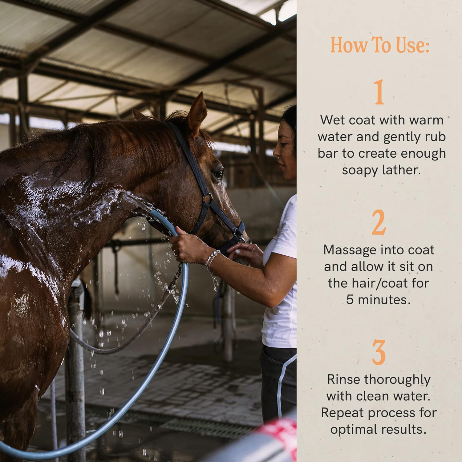 • Barn-Friendly & Travel-Ready - Compact and easy to store in a grooming tote or tack trunk. No plastic waste or bulky bottles, just a hardworking shampoo bar.