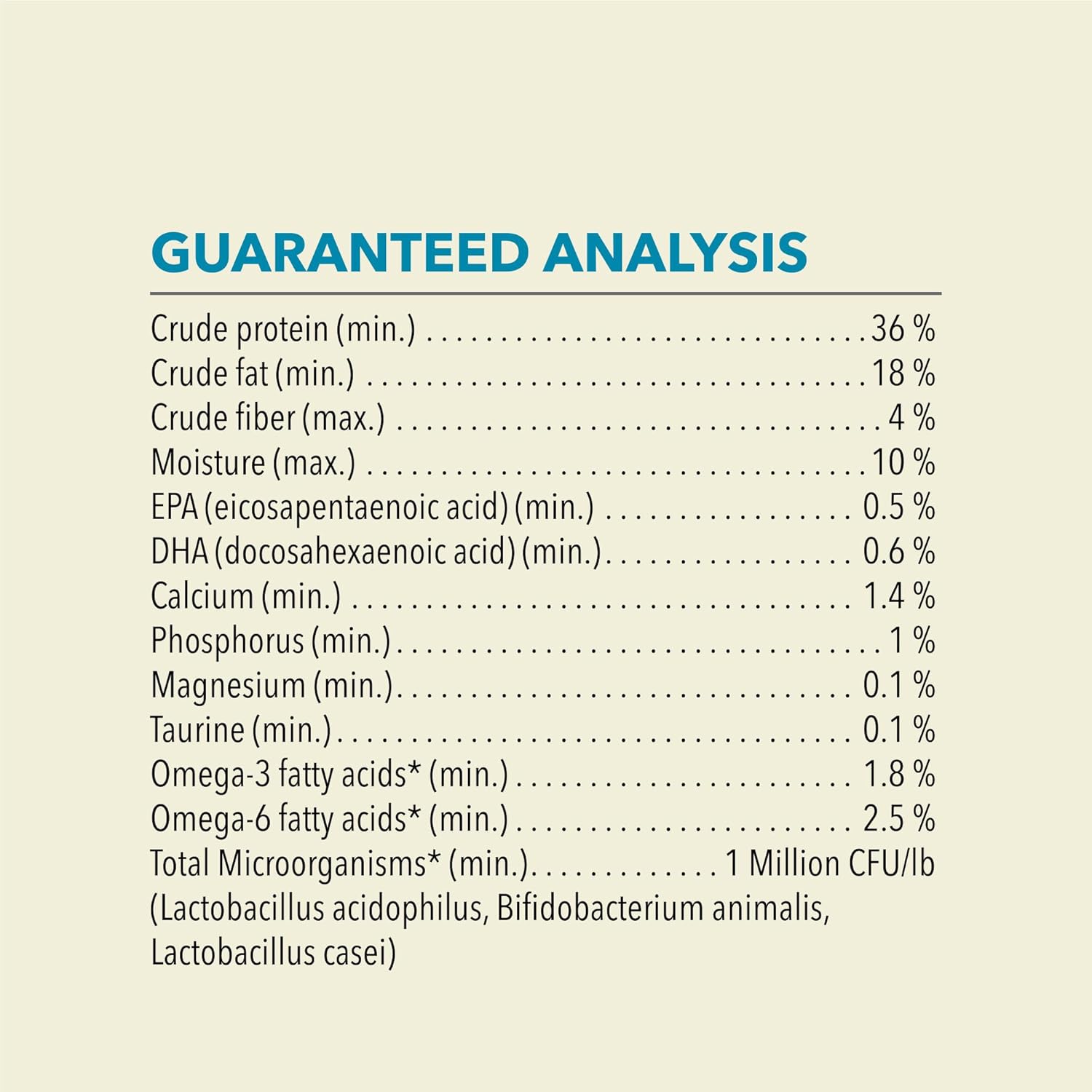 • Fiber plus a blend of probiotics helps support cat digestive health, balanced omega-3 and omega-6 fatty acids help support healthy skin and a shiny coat and taurine, EPA and DHA help maintain eye and heart health
