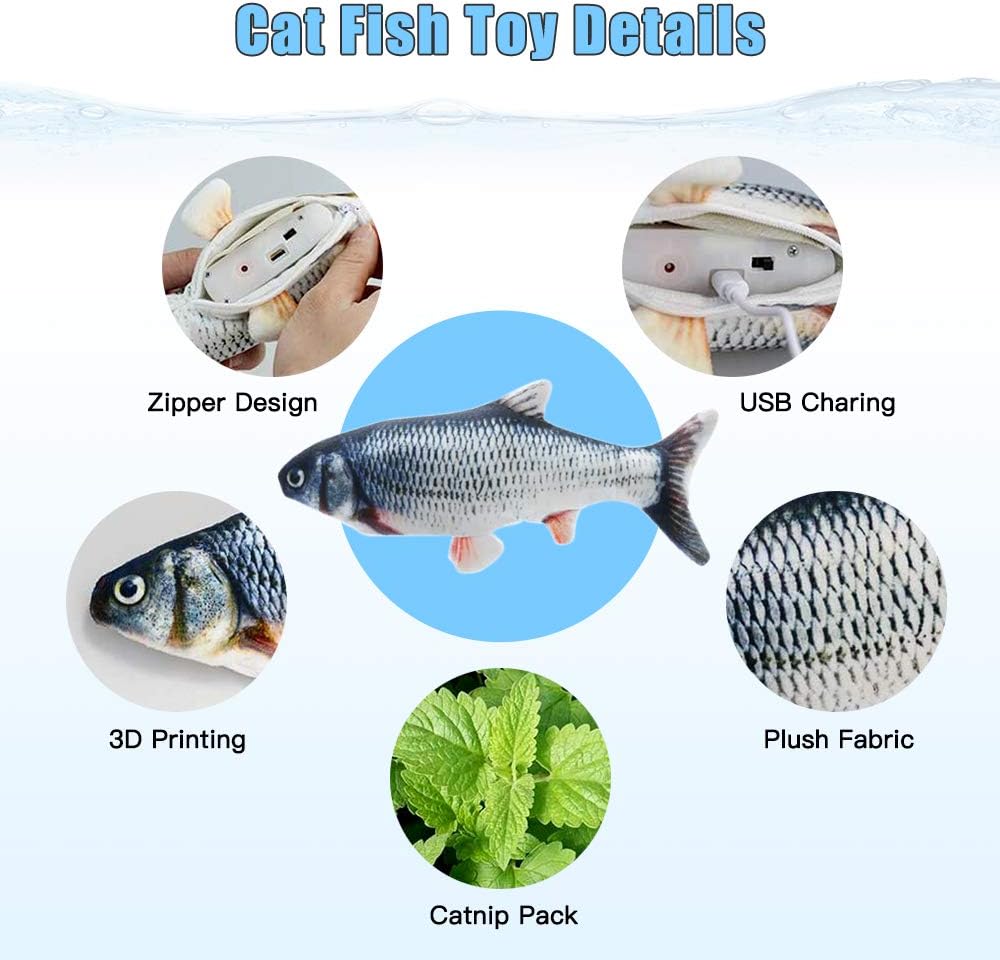 • 【Automatic Moving Fish Cat Toy】When your cat touches this wagging fish toy, the built-in sensor starts to vibrate the fishtail so that it wiggles like a live fish. Which will encourage your cat to kick and play.