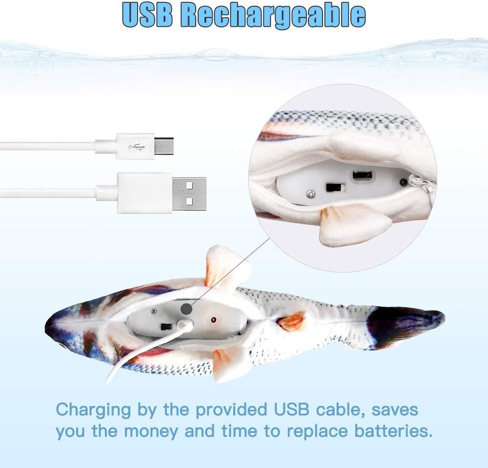 • 【USB Chargeable】This wiggle fish toy is USB chargeable which saves you from the hassle and costs to replace batteries. The infused motor is detachable for convenient cleaning of the plush toy.