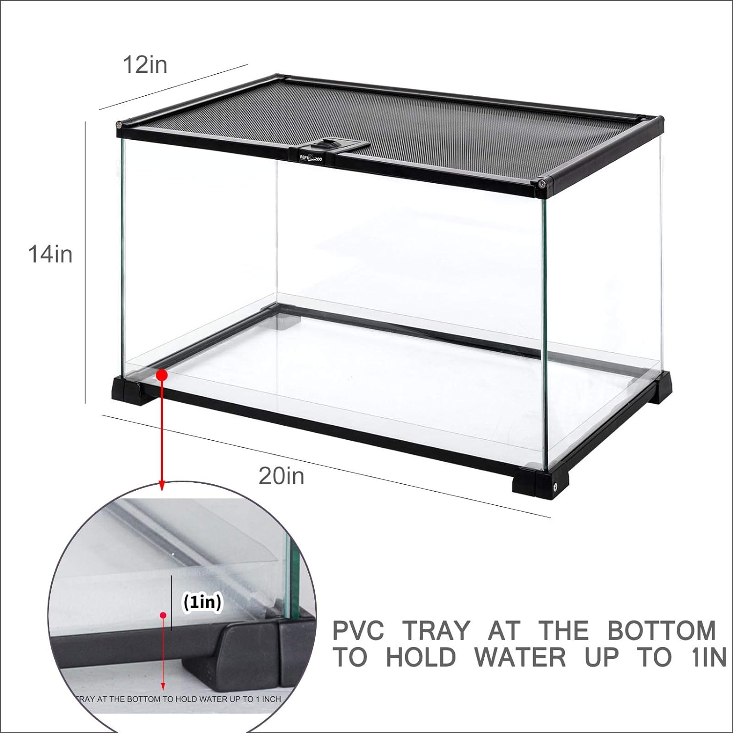 • 【PVC Tray】With a transparent PVC tray in the bottom for keeping substrates wet. So this medium terrarium 20" X 12" X 14" can be used as gecko tank, hermit crab tank, small pets terrarium and more.