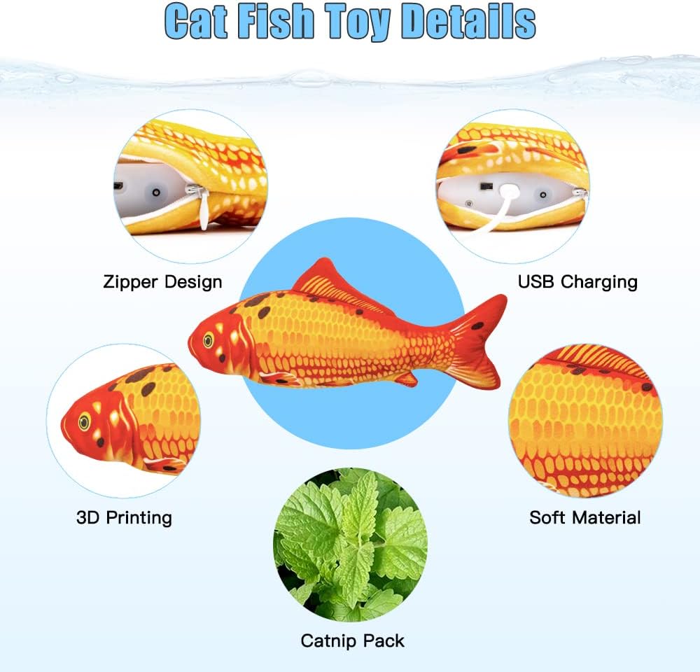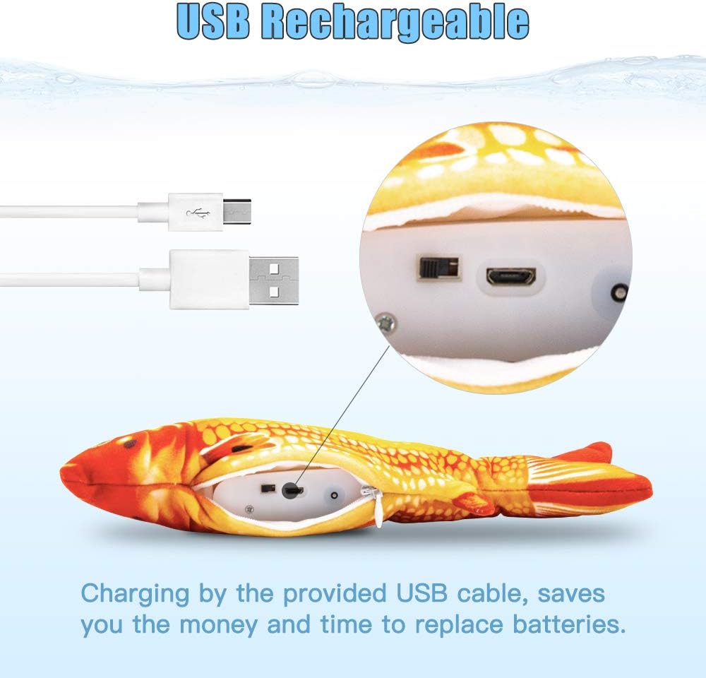 • 【Automatic Moving Fish Cat Toy】When your cat touches this wagging fish toy, the built-in sensor starts to vibrate the fish tail so that it wiggles like a live fish. Which will encourage your cat to kick and play.