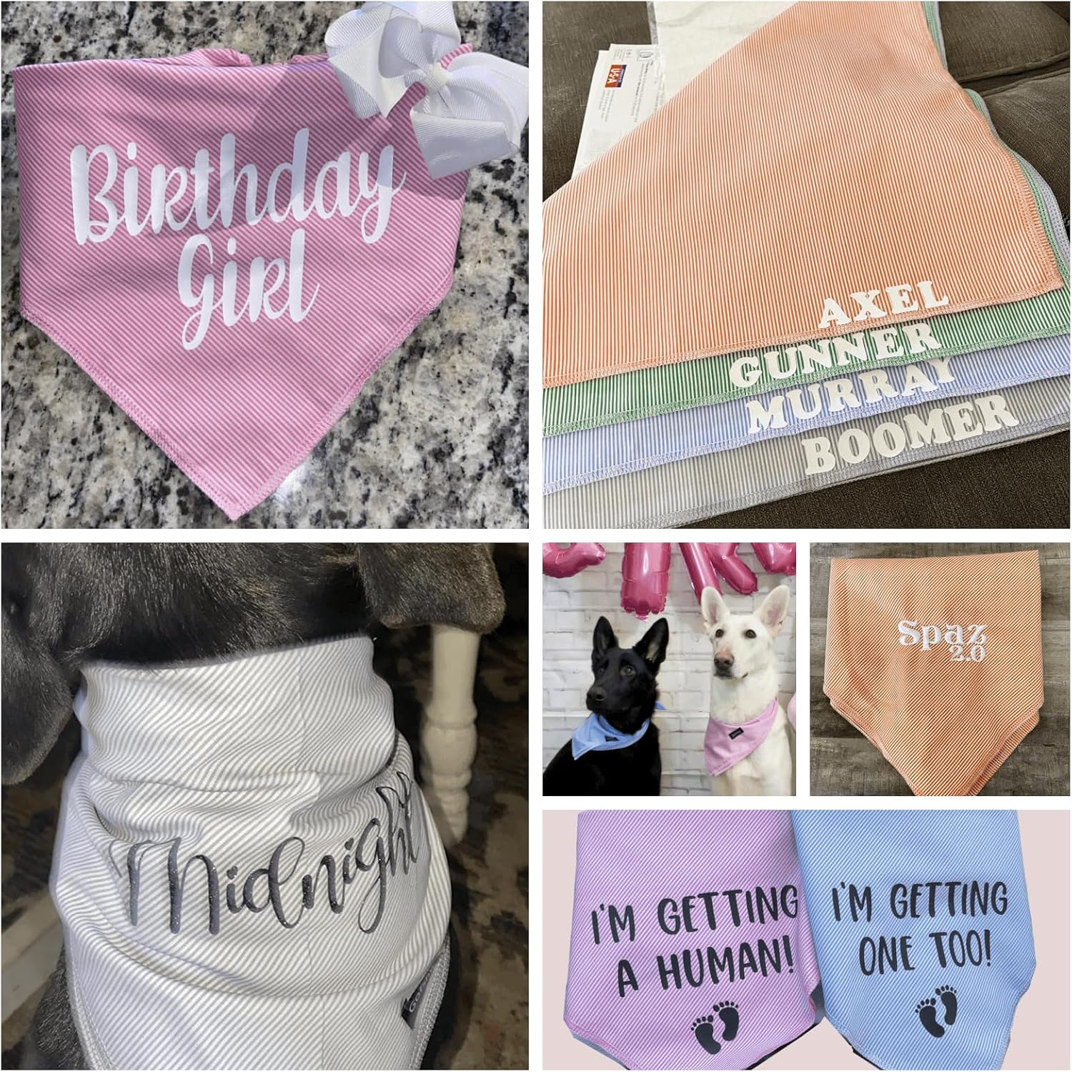 • Personalized Bandanas as Gift: Heat press or embroidered dog name, a unique and pretty bandanas for your pet, what an interesting surprise! This pinstripe handkerchief worked well with heat press!