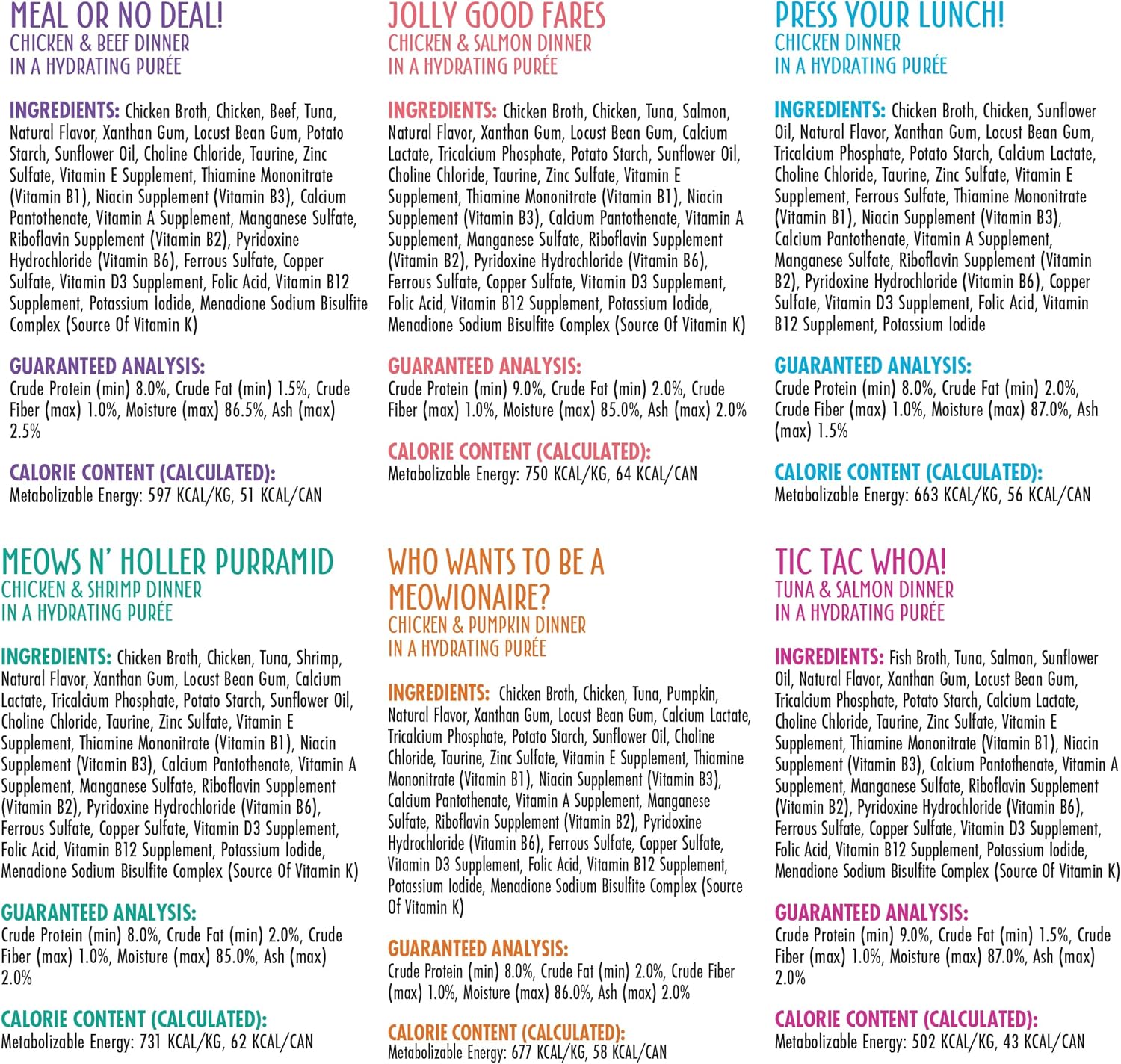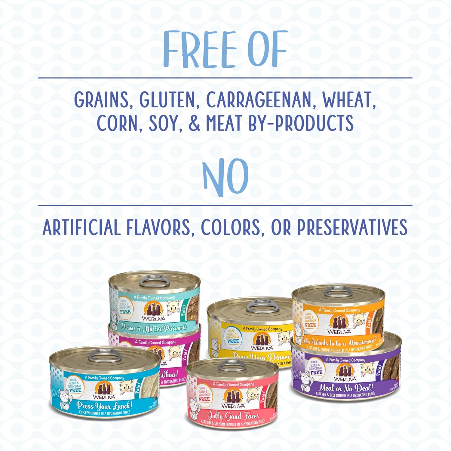 • The Mix and Match Game Variety Pack. Pick a new pate, everyday. Includes all six Weruva canned pate cat food recipes, three of each