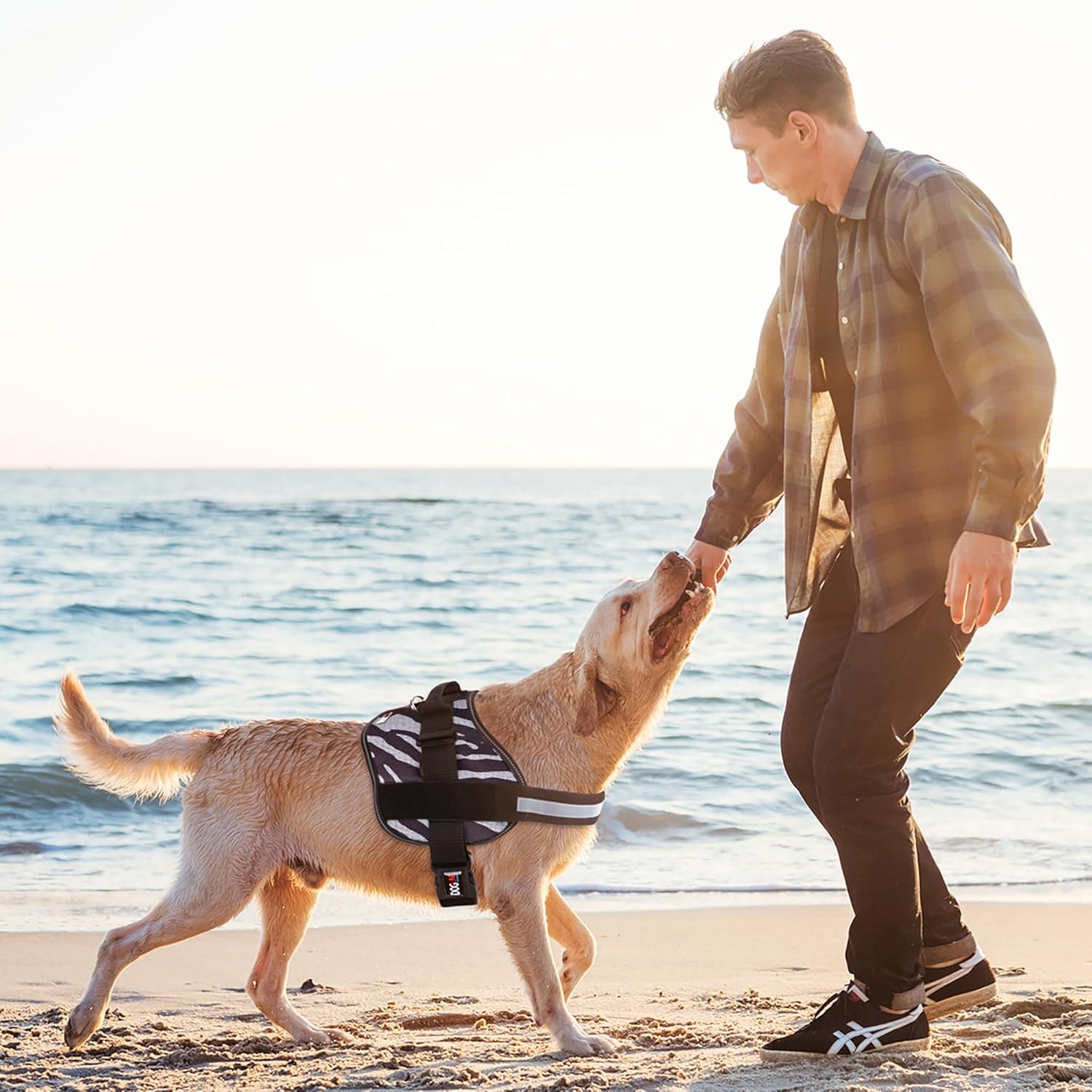 Dogline Dog Harness, Reflective No-Pull Adjustable Vest with Handle for Walking, Training, Breathable, No - Choke Harness for Small, Medium or Large Dogs Room for Patches Zebra Black/White XS 15"-18"