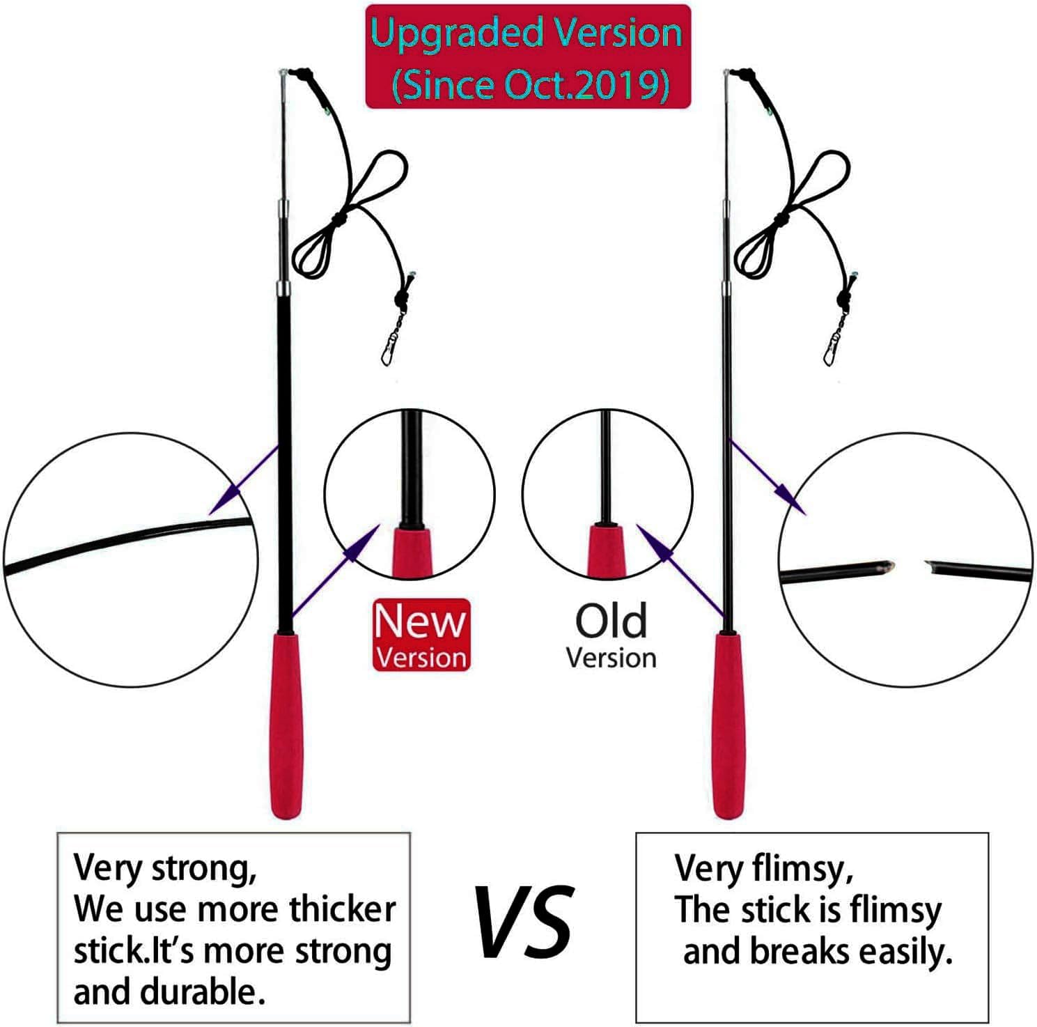 • Great Value--1 Cat wands,5 Worms,3 Packs Cat Feathers 1 Pack Butterfly and 1Pack Octopus.(Provide endless of fun) Durable & Retractable Cat Wand.The wand is made of high carbon fiber which makes it more durable and more flexible.The Rod can extend to 4 periarticular for teasing