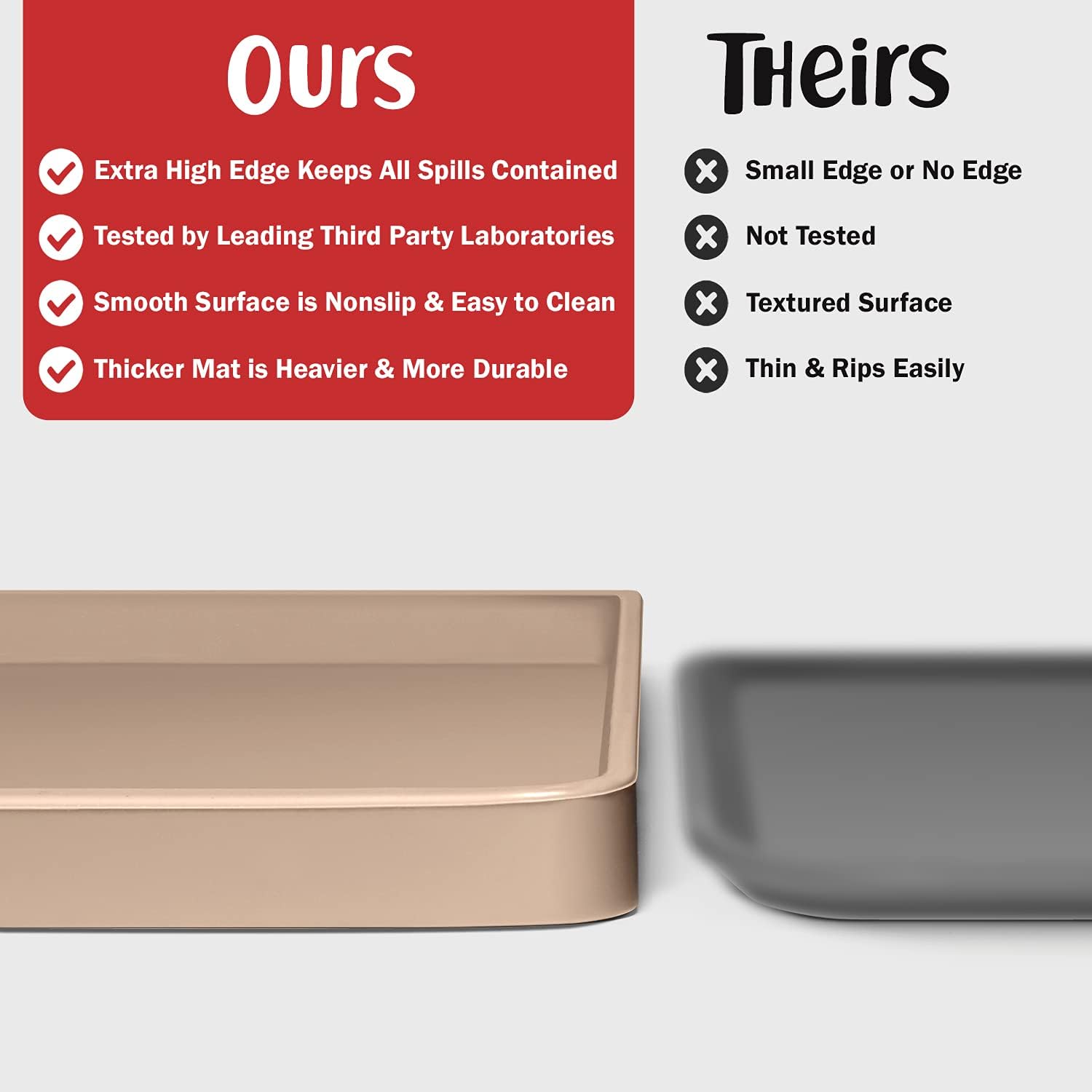 • Less Mess & Less Stress: Super high edge (0.6”) of DogBuddy Dog Food Mat keeps the spilled food and water on the mat and away from your beautiful floor. Silicone is naturally 100% waterproof, so what happens on the mat stays on the mat.