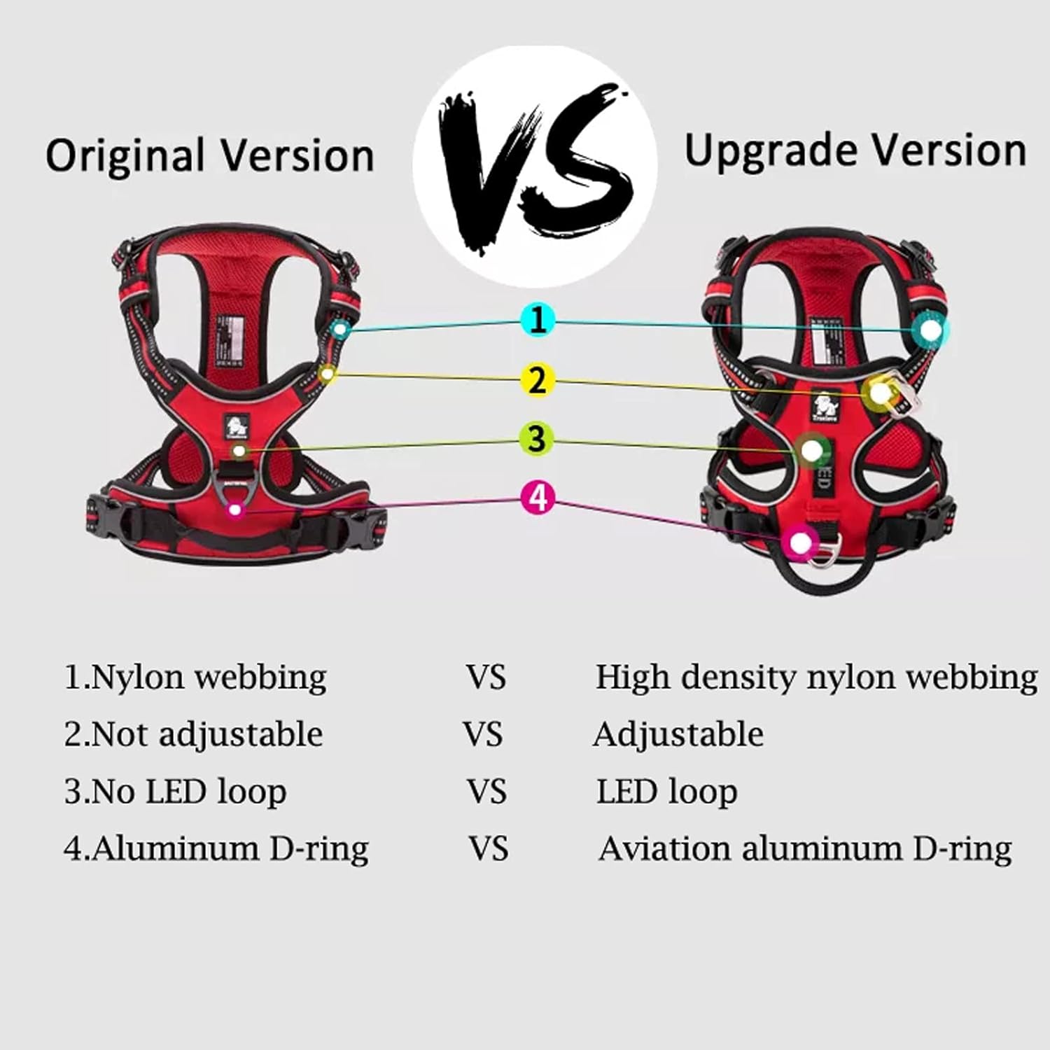• 2. Brilliant Color & high density nylon webbing with 3M reflective improve visibility at night. Soft padded in chest and belly for comfortable.
