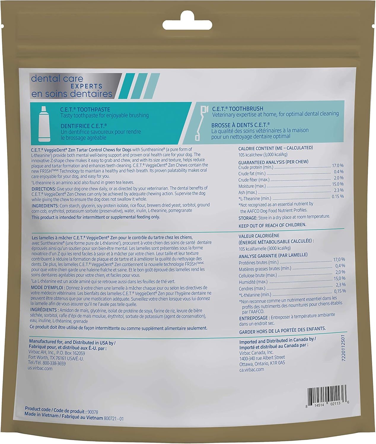 Virbac C.E.T. VEGGIEDENT Zen Tartar Control Chews for Dogs - Large
