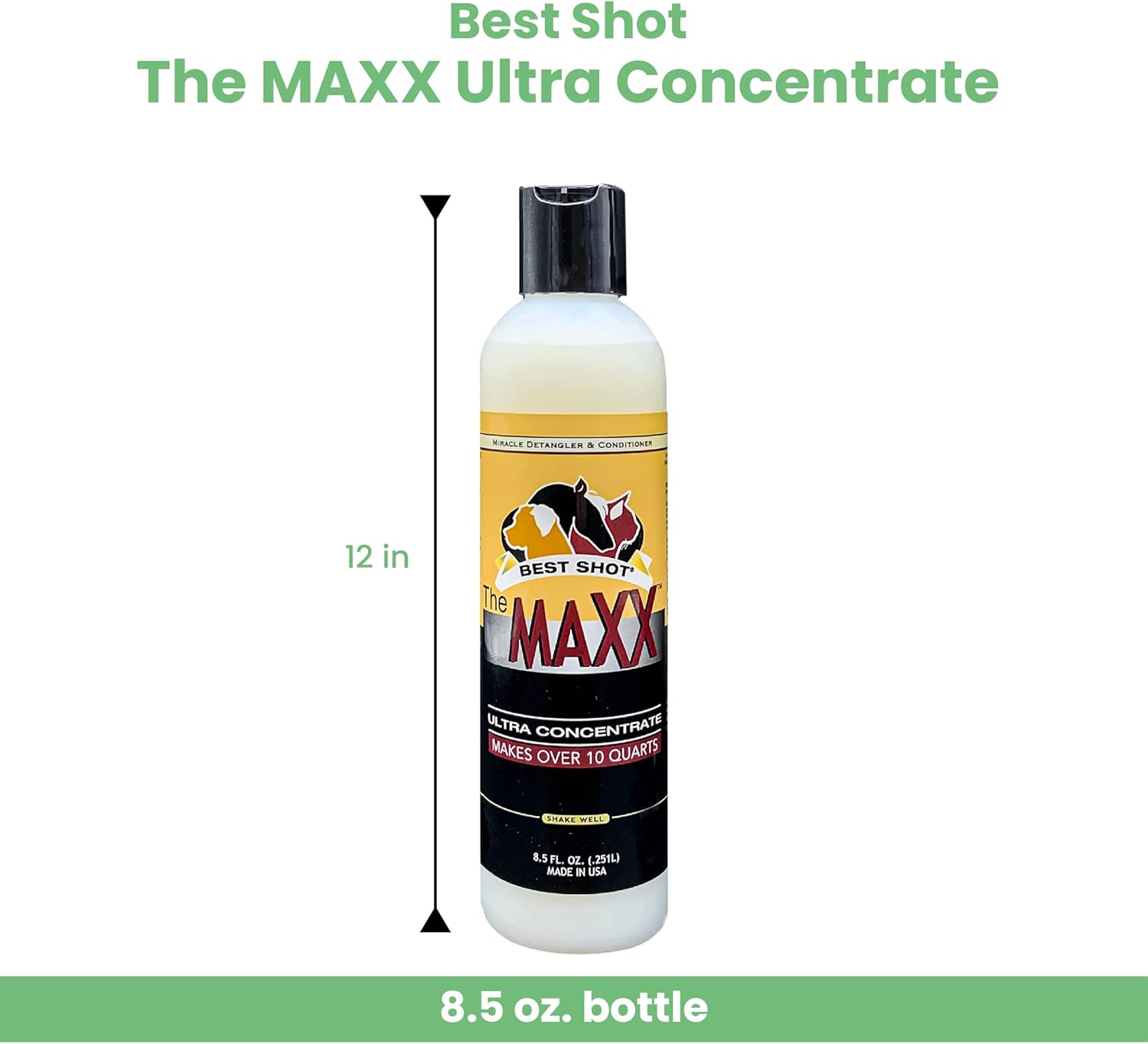 • Miracle Detangler: The MAXX Ultra Concentrate by Best Shot is a miracle detangler and conditioner for your pets. Spray the detangler on areas of concern and blend with your fingers into the mats. Once dried, gently brush and easily detangle