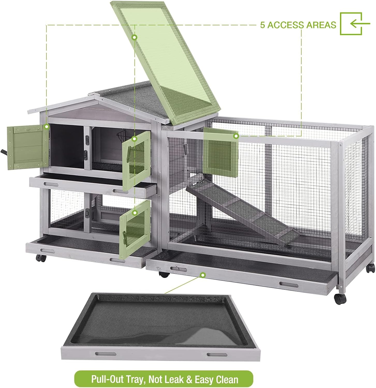 • 【No Leak Plastic Tray】Bunny cage upgrade with thicker plastic no leak removable pull out tray from back and front,easy to clean !Never go mouldy. Product Dimension:61.2"L x 22.6"W x 33.5"H