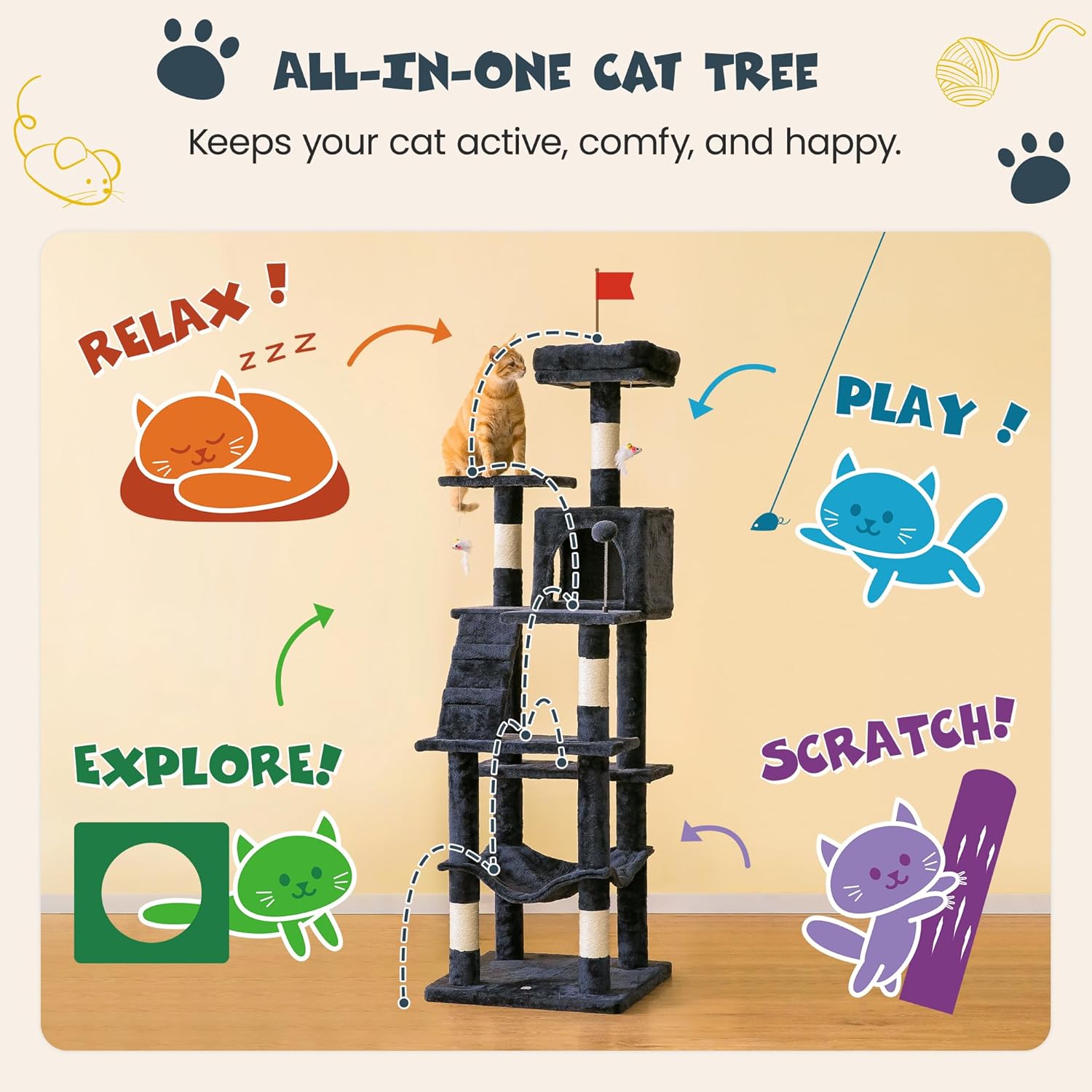 • 【THE ULTIMATE CAT-TAINMENT CENTER 】- The MWPO 63.8-Inch cat tree has multiple levels with scratching posts and cozy hideaways, making it the ultimate spot for your cat to climb, scratch, and lounge.