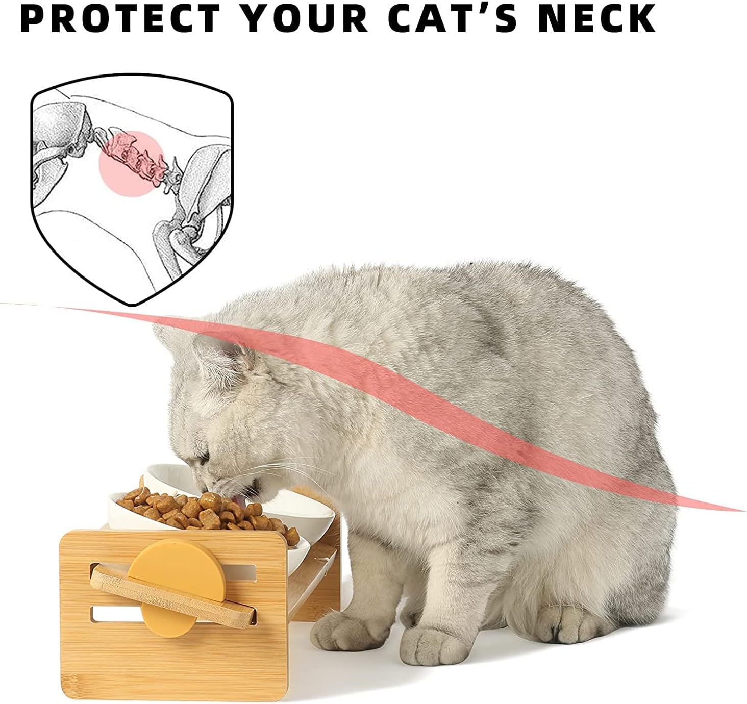 • FOOD GRADE CERAMIC BOWLS - Ceramic material is sturdy, rust-free and harmless to cats. And the natural bamboo holder is coated with varnish, which is waterproof and durable