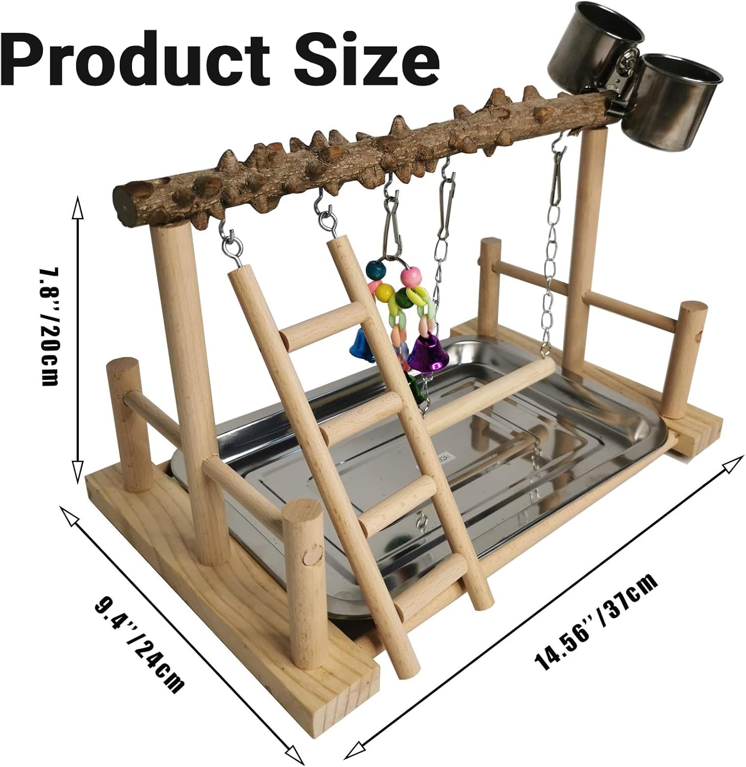 • PERFECT SIZE: SIZE: 14.56"L x 9.4"W x 7.8"H (37 x 24 x 20 cm), birdcage play stand the great portable size is suitable for placing on the desk. Brightly colored toys appeal to the bird’s strong eyesight capabilities. When kept as pets parrots need time outside of their cage to play, to exercise and to interact with their human companions