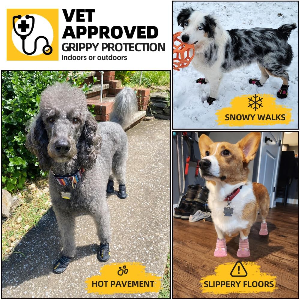 • The paw wear can protection from sharp thorns and hot pavement. Help dogs to stand up on hardwood floors easier