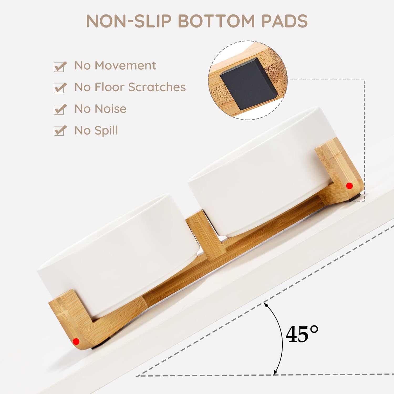 • Double Bowl Design:One dog bowl for food and one for water, Each ceramic cat bowl has a Unique wooden stand, raising the dishes closer to your pet for more comfortable eating