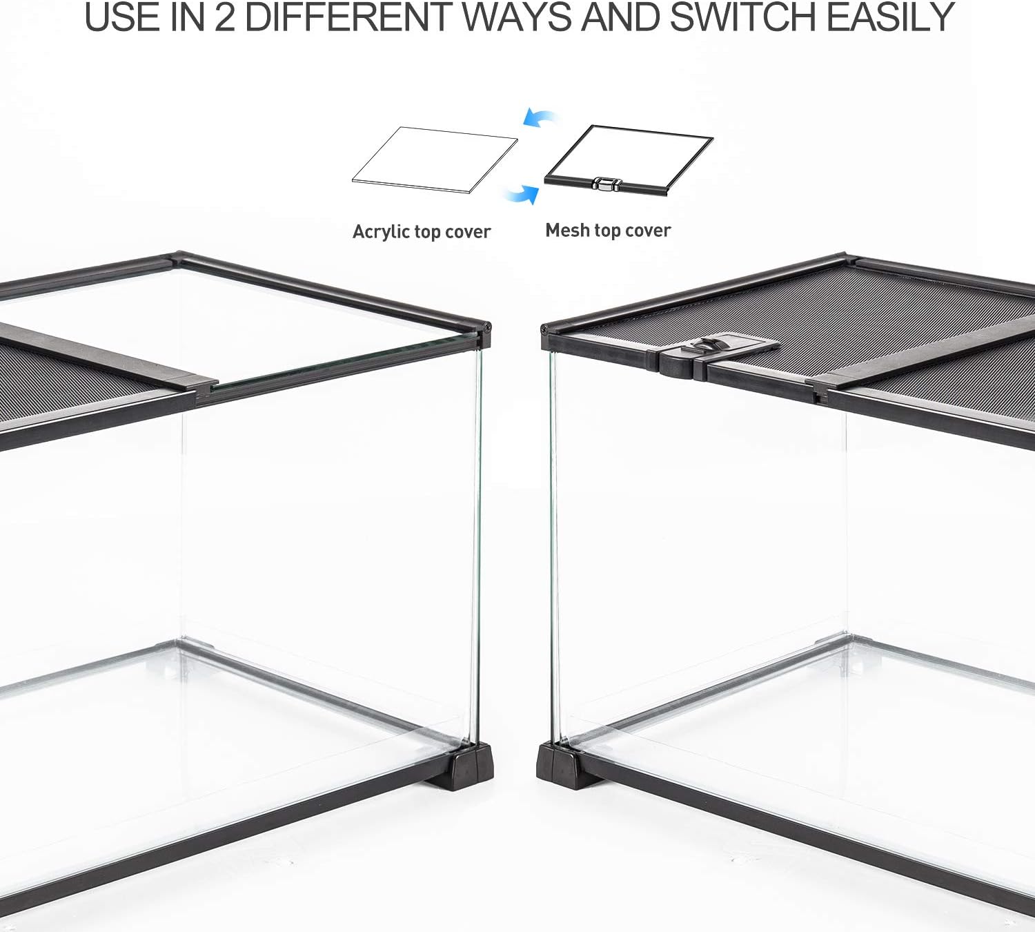 • Dual sliding mesh top cover is for easy opening and closing. (Attached an extra acrylic sliding top cover for better views, use in 2 different ways and switch easily)