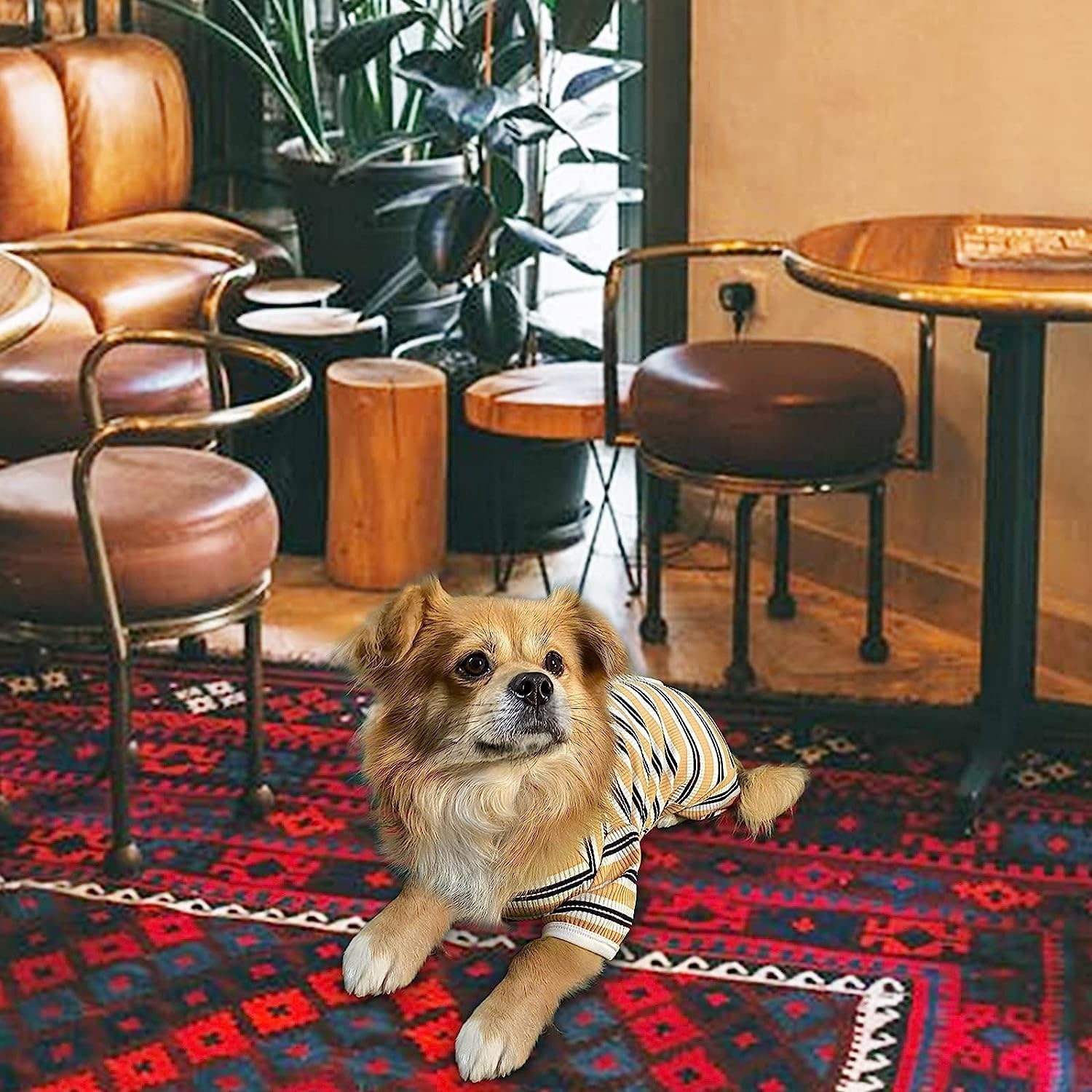 TONY HOBY Male Dog Pajamas, 4 Legged Dog Jumpsuit with Brown Stripe, Dogs Shirt for Small Medium Dogs (Brown, Boy, XS)