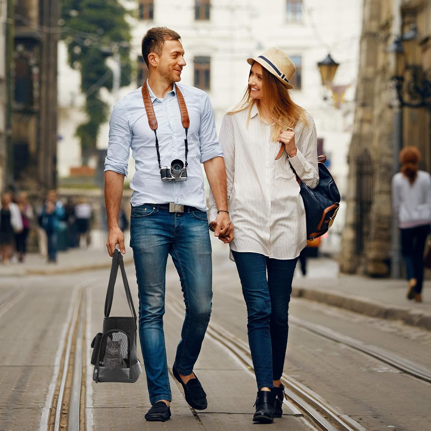 • 【New fashion design pet carrier】Johomviin’s excellent designers use the latest high-quality PU leather and waterproof Oxford cloth to match the design,Perfectly meet the daily travel needs of cats and small dogs.