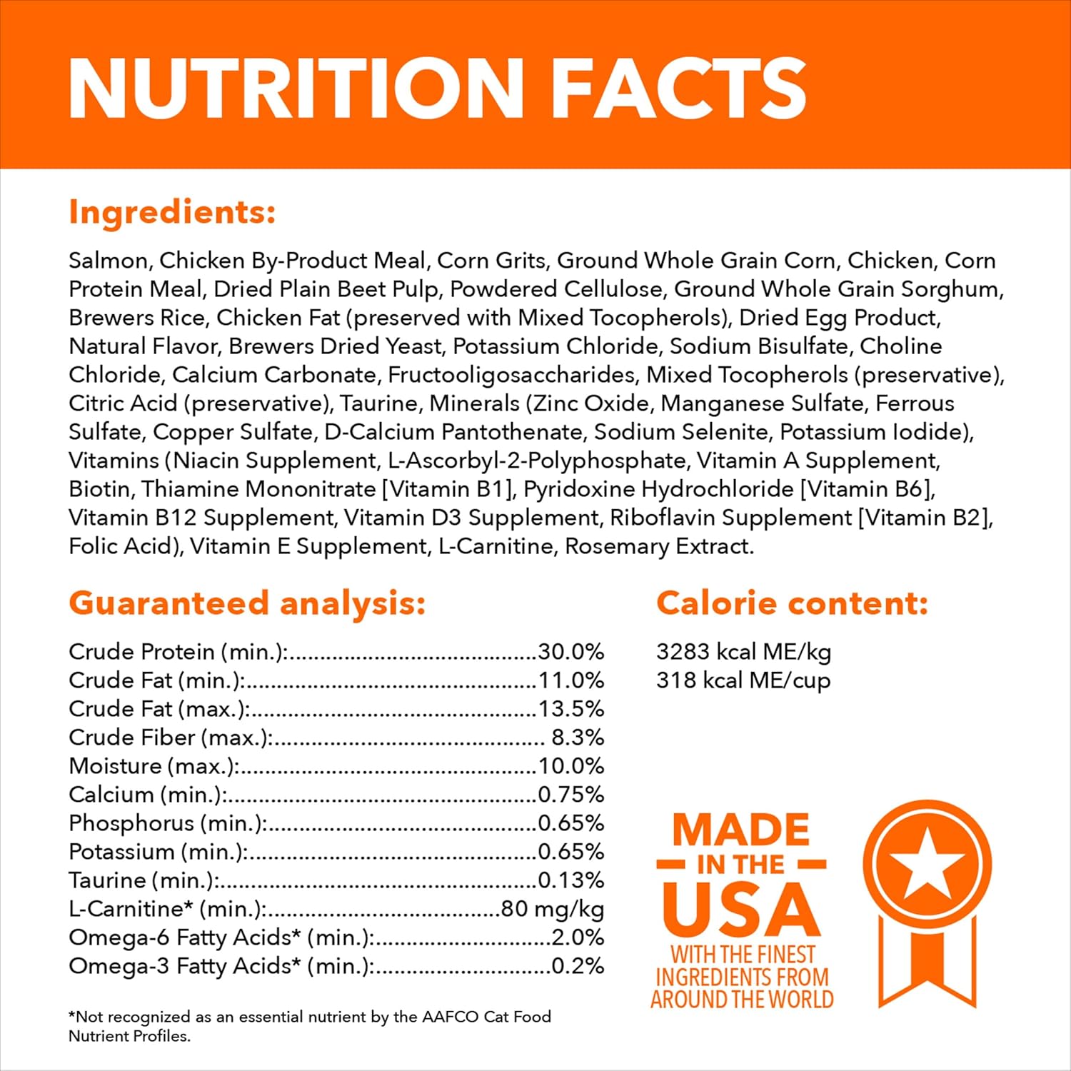 • Supports Healthy Weight: This adult dry cat food is formulated with L-carnitine to help your indoor cat burn fat and maintain a healthy metabolism so they can continue to live a happy life