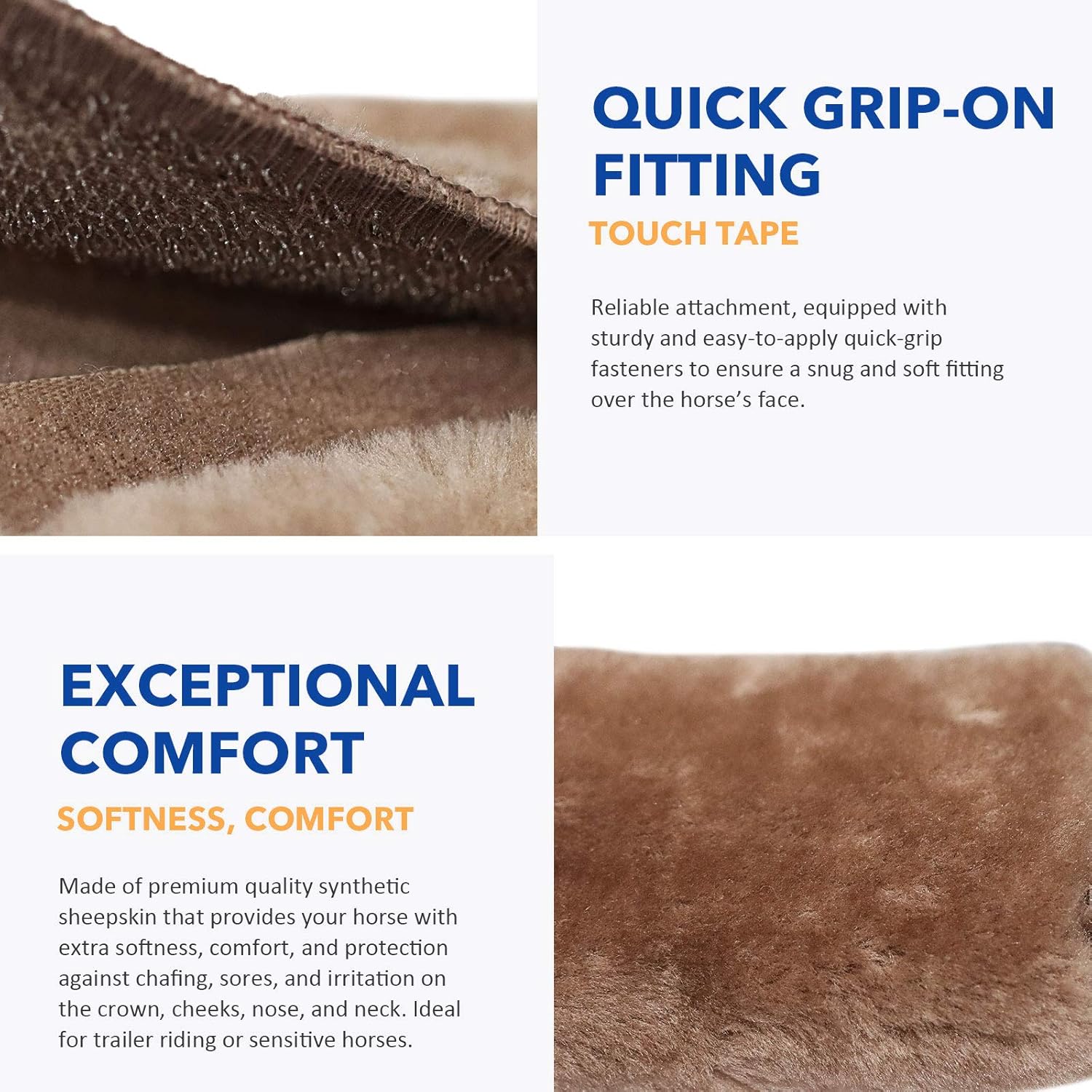 • EXCEPTIONAL COMFORT: Made of premium quality synthetic sheepskin that provides your horse with extra softness, comfort, and protection against chafing, sores, and irritation on the crown, cheeks, nose, and neck. Ideal for trailer riding or sensitive horses.
