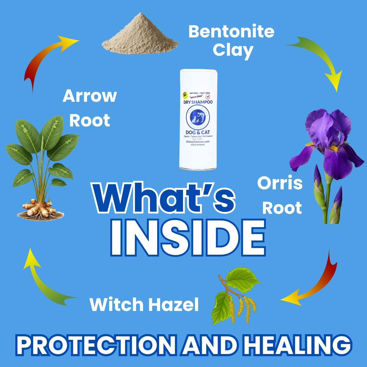 Sit. Stay. Forever. Dry Shampoo for Dogs & Cats – Organic Dry Bath Powder, Talco para Perros, Hypoallergenic, Odor Control for Smelly Dogs, No-Rinse, Anti-Itch, Safe & Natural, Made in The USA, 28 oz