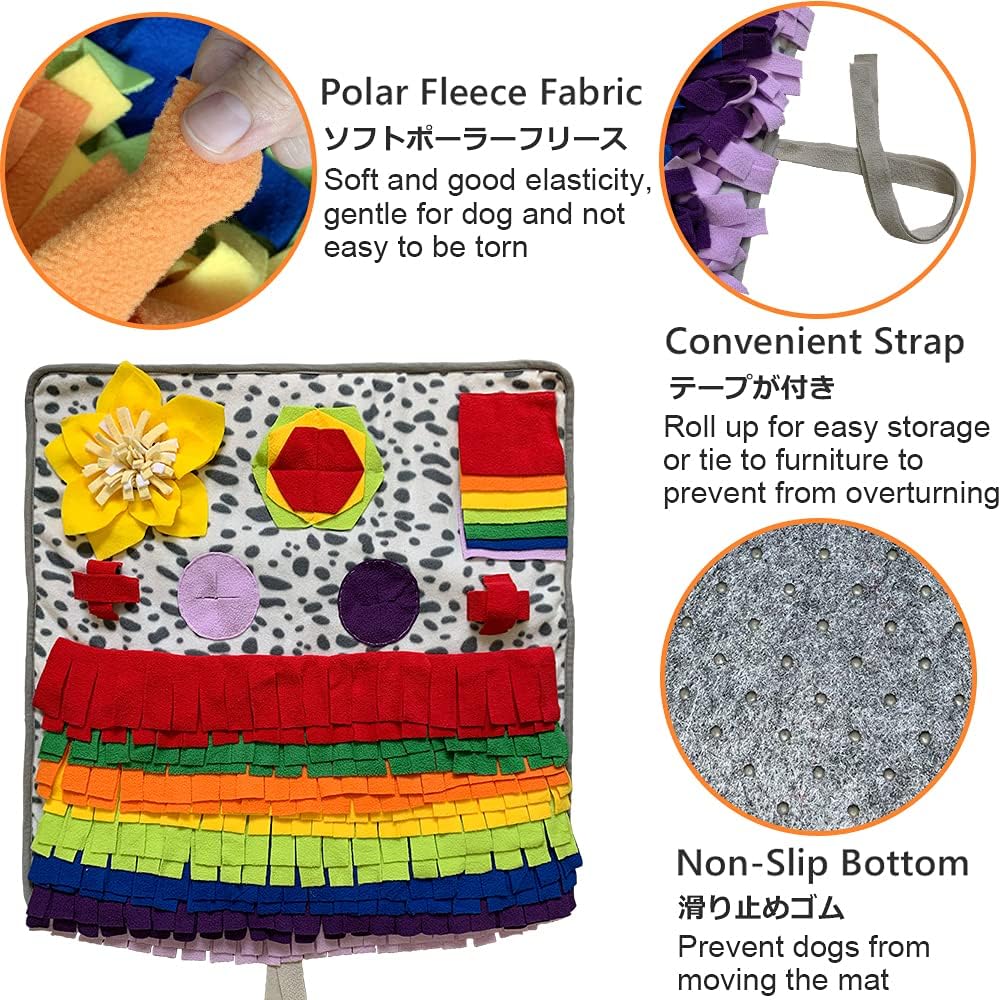 • RICH PUZZLE GAME: The snuffle mat allows dogs to hunt for food or treats hidden in the mat, good for mental stimulation and enrichment for your pup. There are different places to hide food including the messy grass, petals and varieties of pockets, which keeps your dog occupied for longer and avoids boredom and destructive behavior.