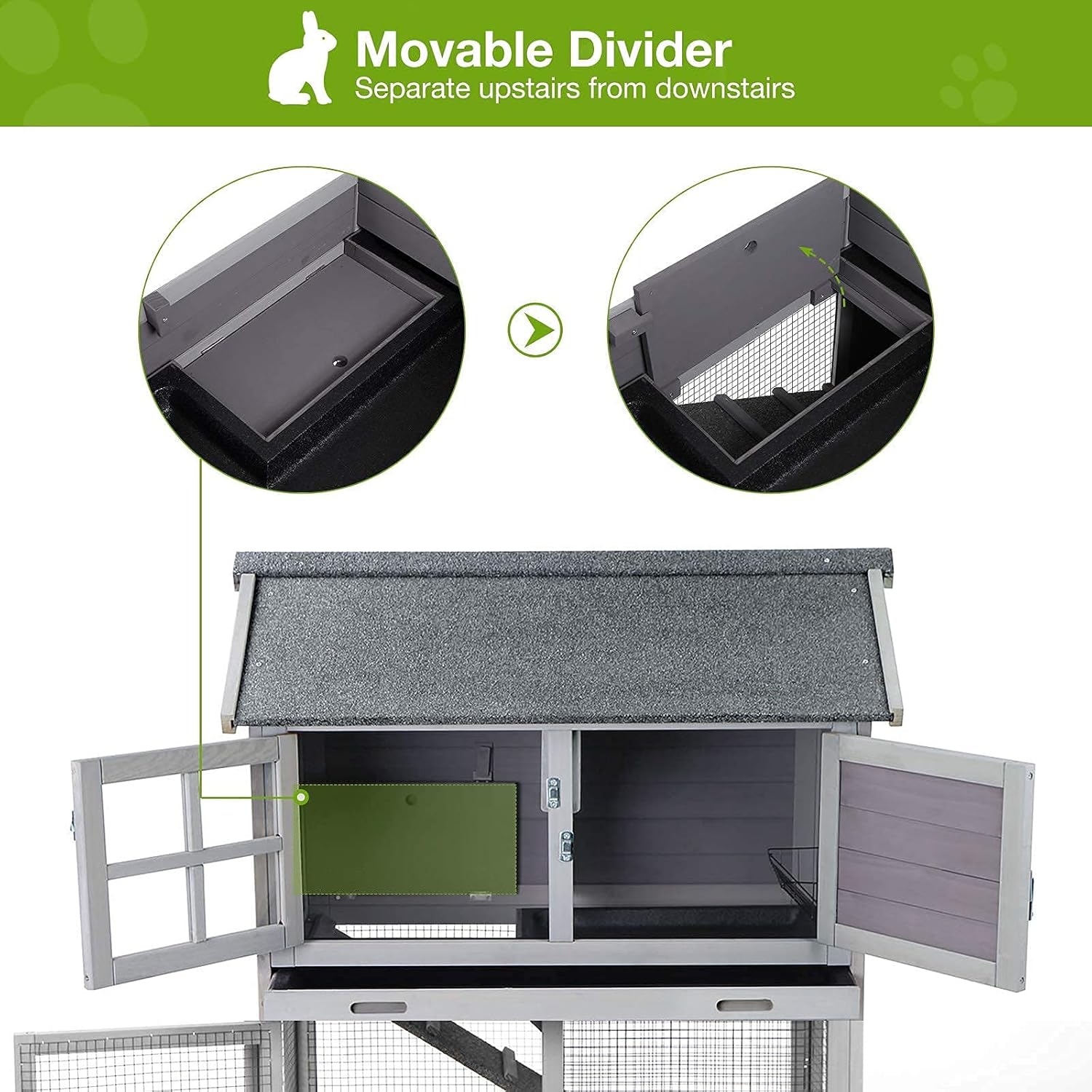 • 【100% Non-TOXIC 】100% Non-TOXIC Solid Fir wood, asphalt roof suitable for indoor and outdoor use, free rabbit chewing toy & metal feeder include.Overall Size: L38.6" x D25.6" x H44.2"