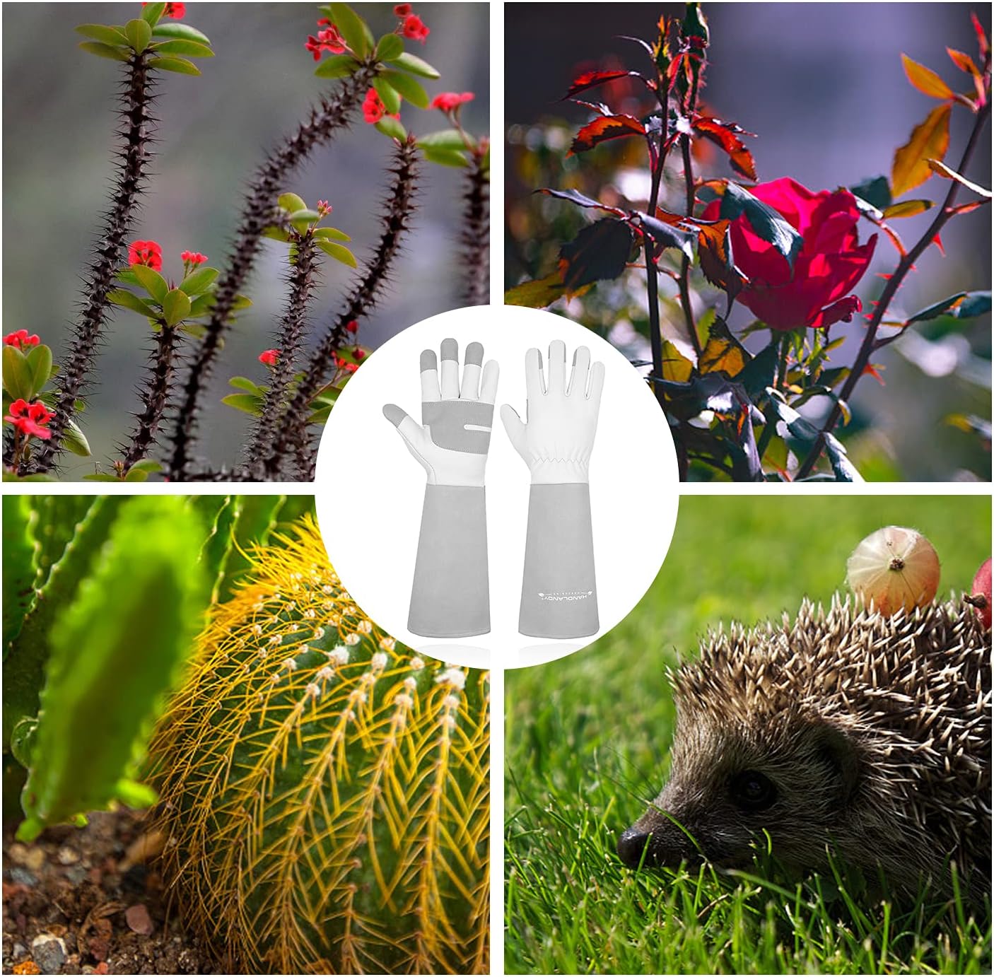 • What Every Gardener Needs! --- Thorn proof long garden gloves do a great job protecting your hands and arms from rose thorns, brambles, perfect for prune thorny bush, weeding and trimming trees.