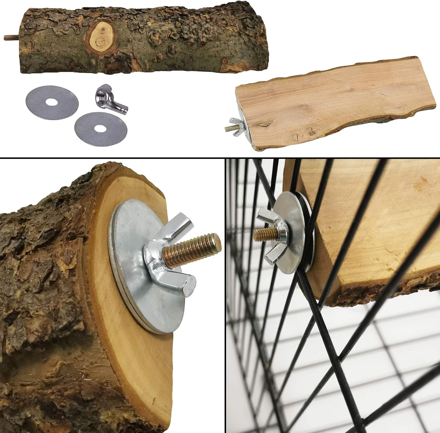 • [EASY TO INSTALL] Perch built-in bolts and wing nuts.It can be installed inside or outside the cage to provide extra living and landing space for your pet and provide a safe and comfortable resting place for your pet.The chew toy can be hung in cages