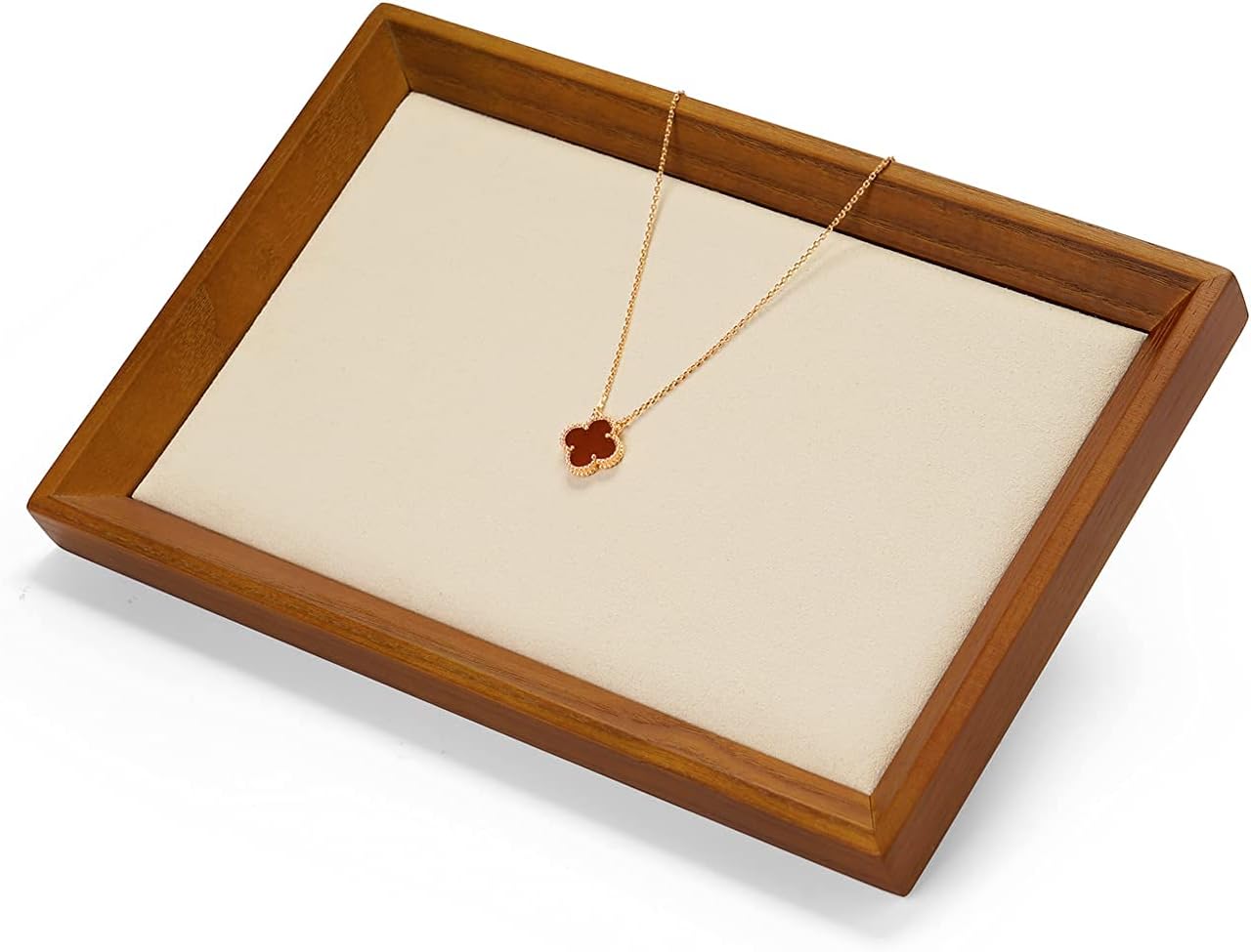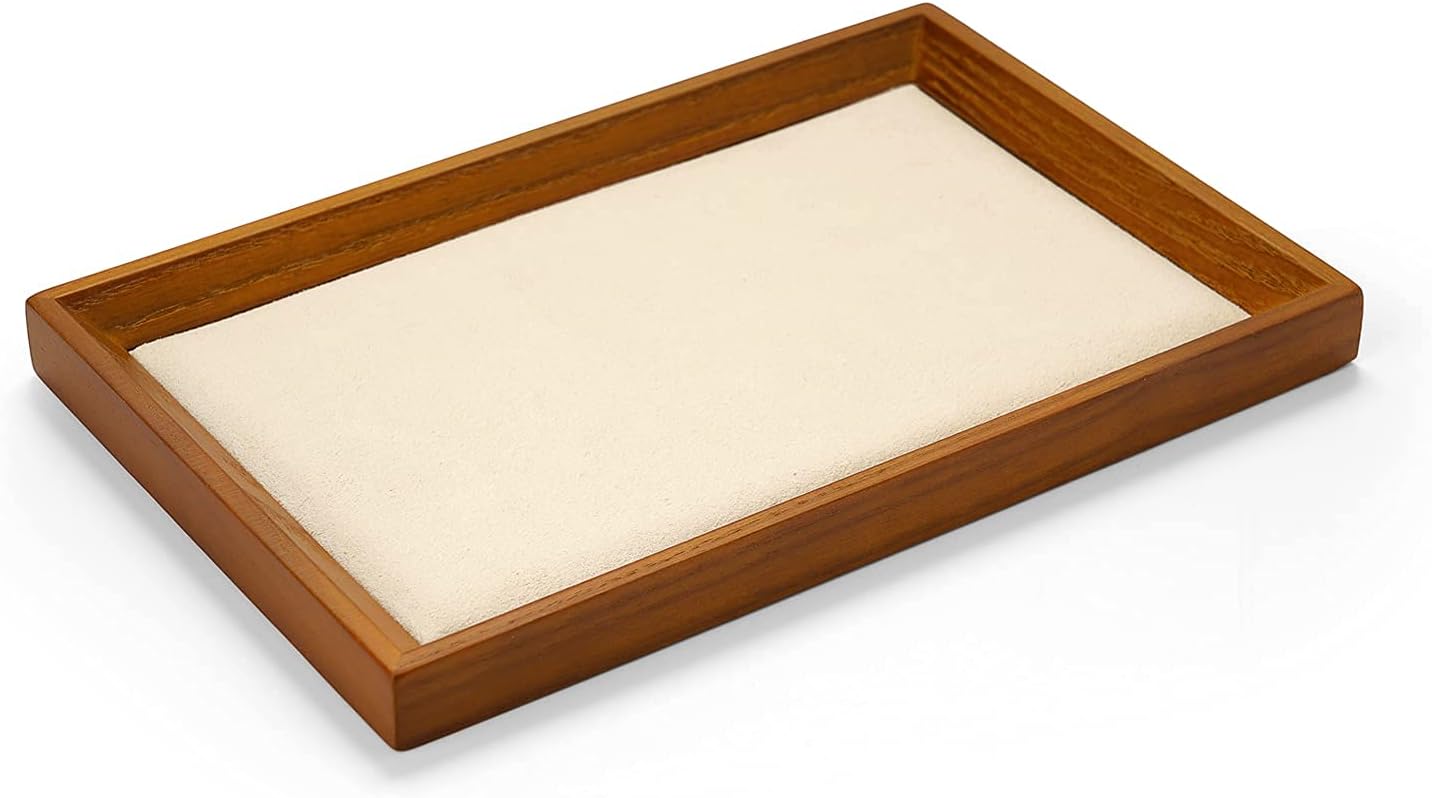 Oirlv Solid Wood Small Jewelry Tray Trade Showcase Countertop Jewelry Display Trays Rectangle Vanity Plate(Creamy-White, Small)
