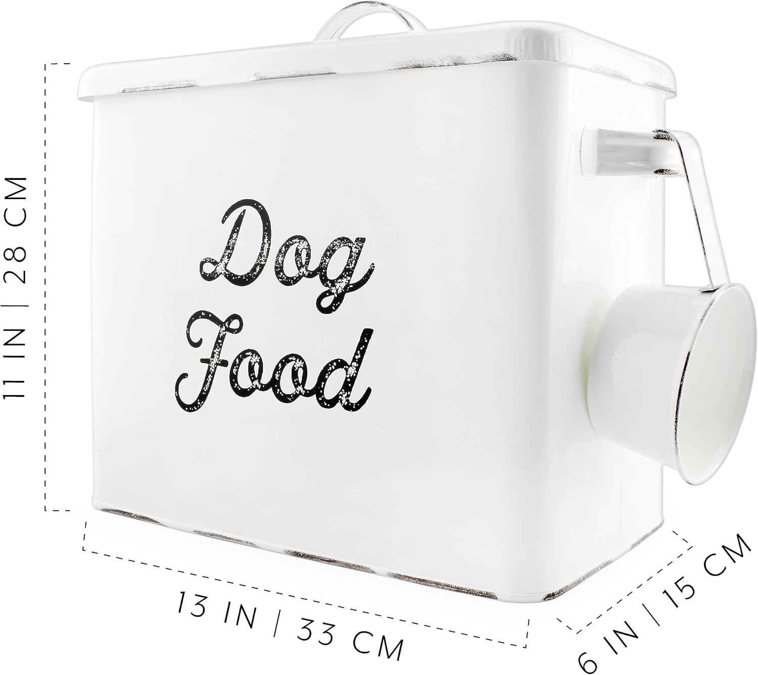 AuldHome Rustic Dog Food Canister; White Farmhouse Style Storage Bin for Small Dogs