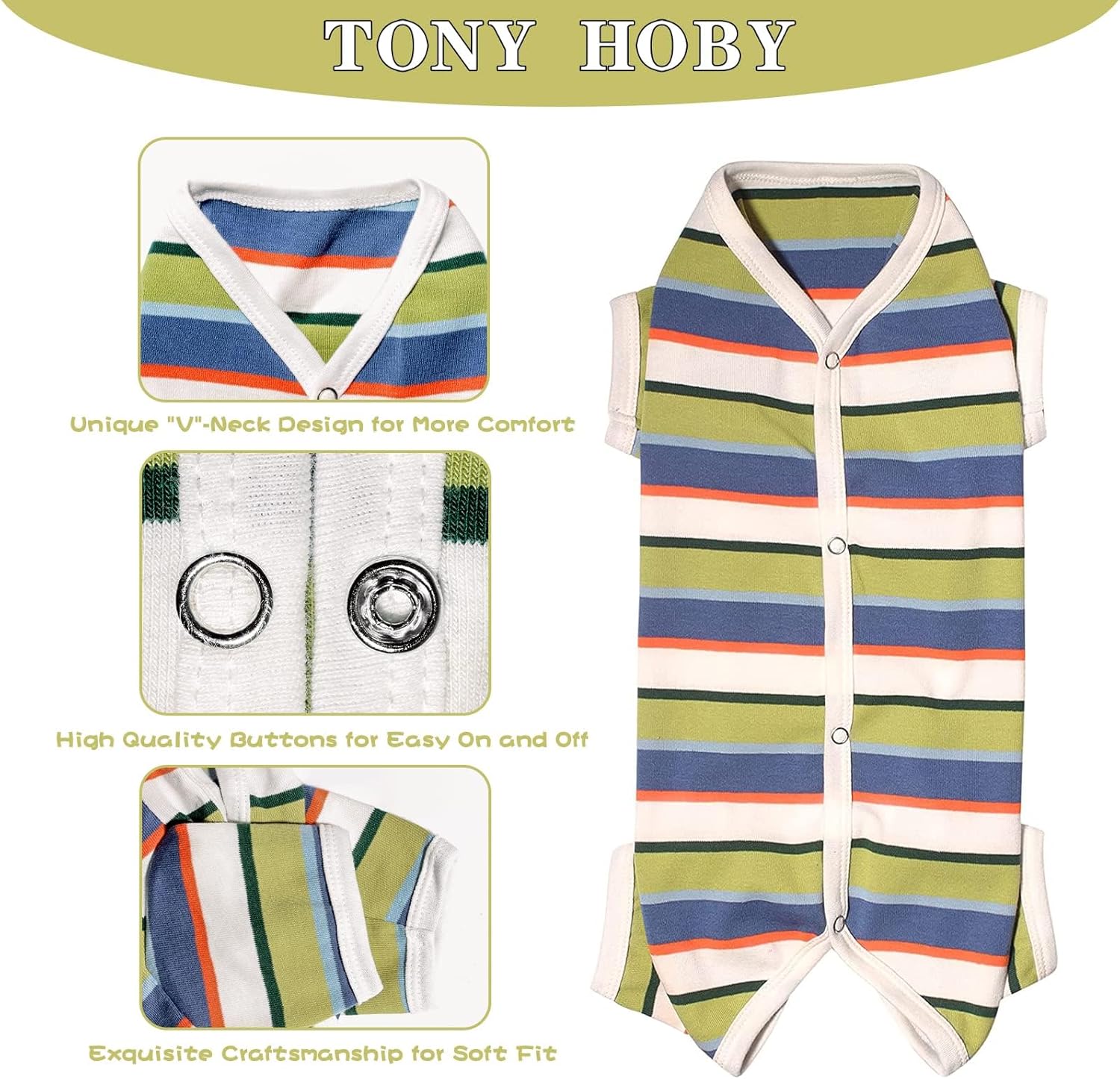 • 【Special Design】-TONY HOBY Female/Male Dog Pajamas has a unique design for men and women, focusing on protecting the dog's abdomen; and using metal buttons, easy to wear; unique four-leg design, elastic waist, and with bright stripes, beautiful and fashionable.
