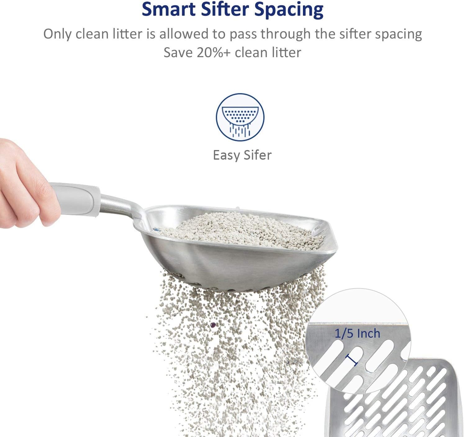 • [Features]: Deep Shovel Sifter was carefully developed by cat owners, WePet made this scooper with heavy duty quality, it’s durable, aluminum alloy body. The body is waterproof and very easy to clean, rust-resistant and corrosion resistant. It’s highly recommended by cat lovers for everyday use.