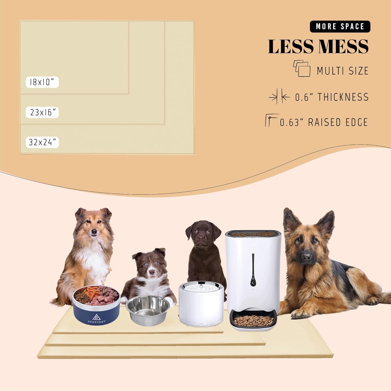• Perfect for Medium to Large Breeds: Need a premium dog bowl mat for medium and small breeds? Elevate feeding affordably with AVERYDAY's 32x24'' pet bowl mat - where quality meets affordability for your furry friends