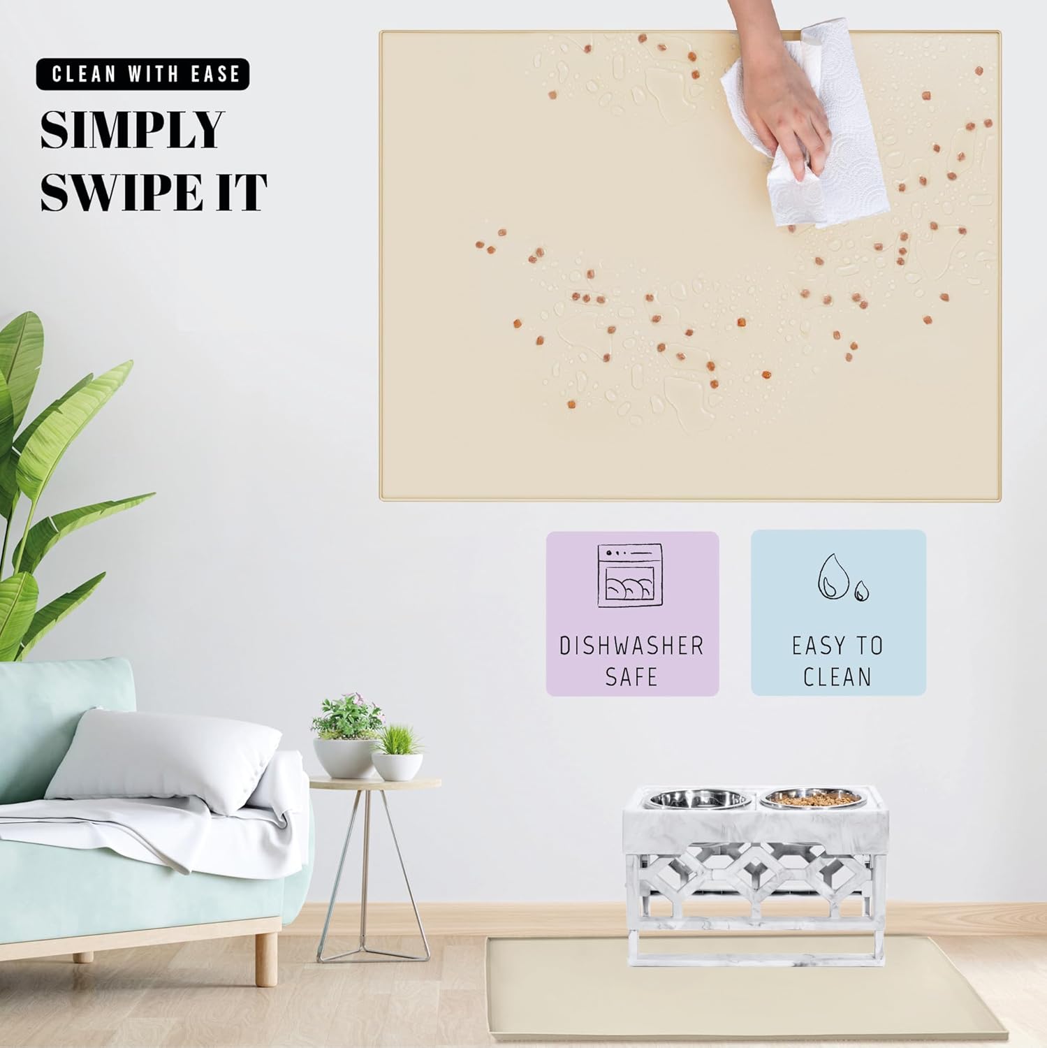 • Hassle-Free Cleanup: Want to reduce cleaning time? Our high durability dog food mat large for saves you the hassle. Just wipe it with a paper towel every 3-5 days, and say goodbye to daily cleanup chores