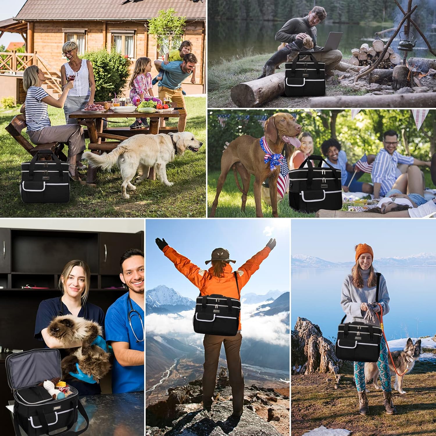 • 🐶Large Capacity and Functional:This pet travel bag has a large inner compartment to store pet treats, toys, and other pet supplies for dogs and cats!Comes with multiple functional pockets and built-in adjustable flap to stay flexible and organized.Enough storage space for all your pet's essentials.
