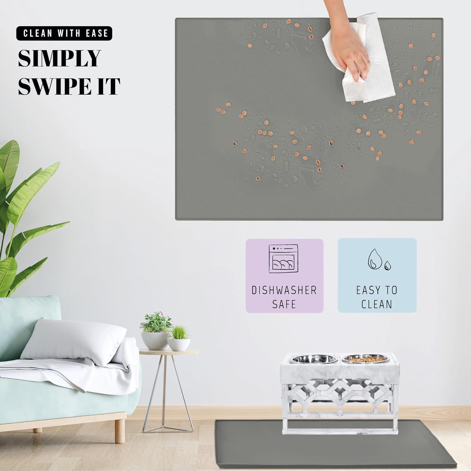 • Hassle-Free Cleanup: Want to reduce cleaning time? Our high durability dog food mat large for saves you the hassle. Just wipe it with a paper towel every 3-5 days, and say goodbye to daily cleanup chores