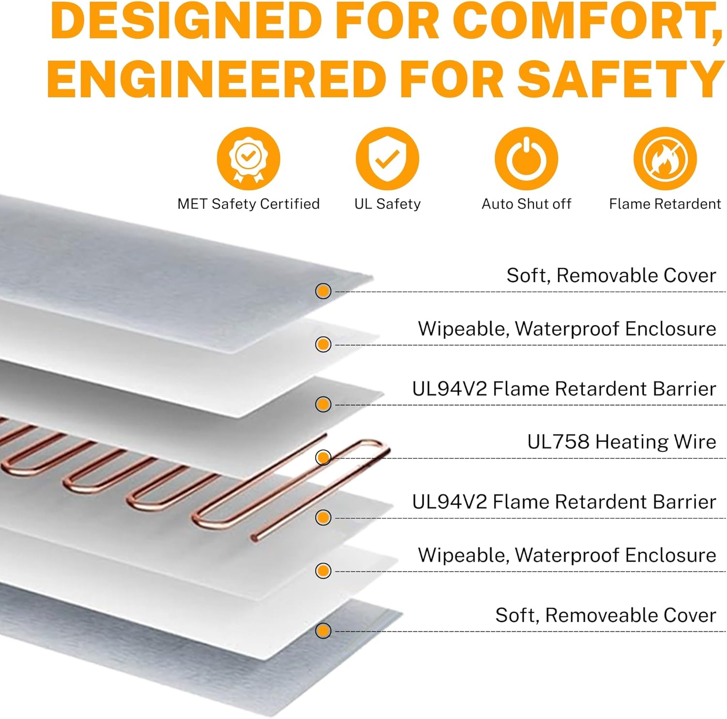 • Safety First: UL-certified heating wire with 7-layer protection and built-in sensor prevents overheating. Waterproof and flame-retardant for peace of mind.