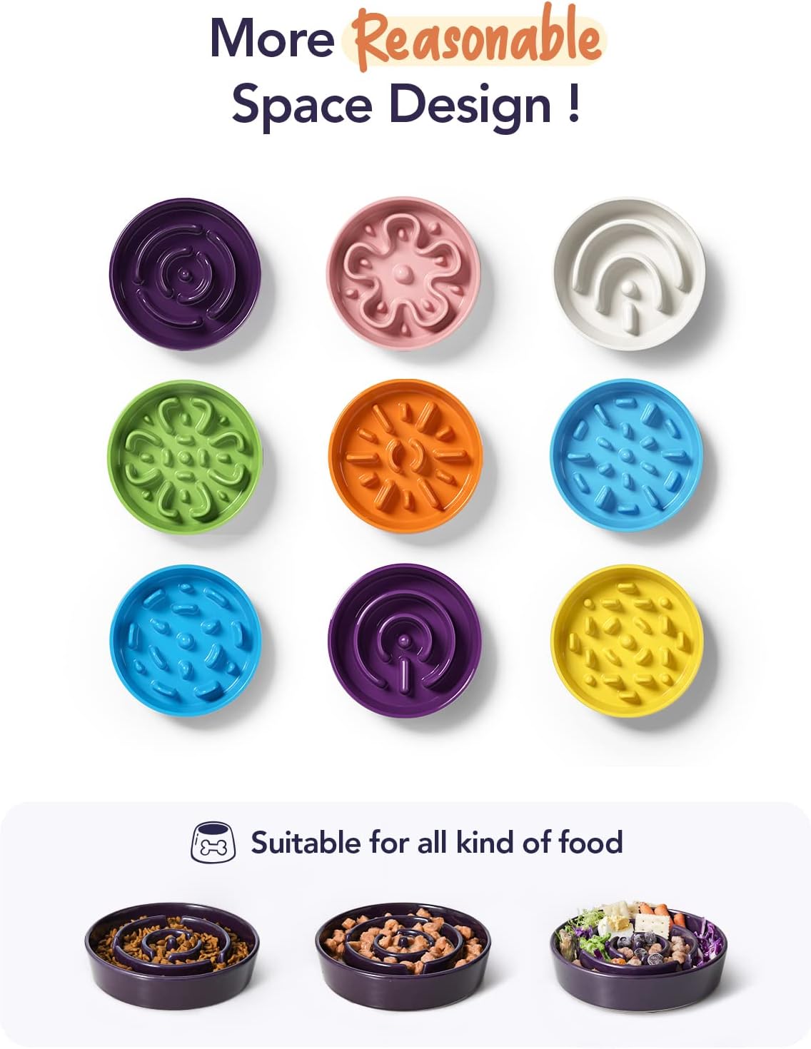 LE TAUCI Dog Bowls Slow Feeder Ceramic, 1.5 Cup Slow Feeding Bowl for Small and Medium Breed, Puzzle Dog Food Bowl for Fast Eater, Maze Purple