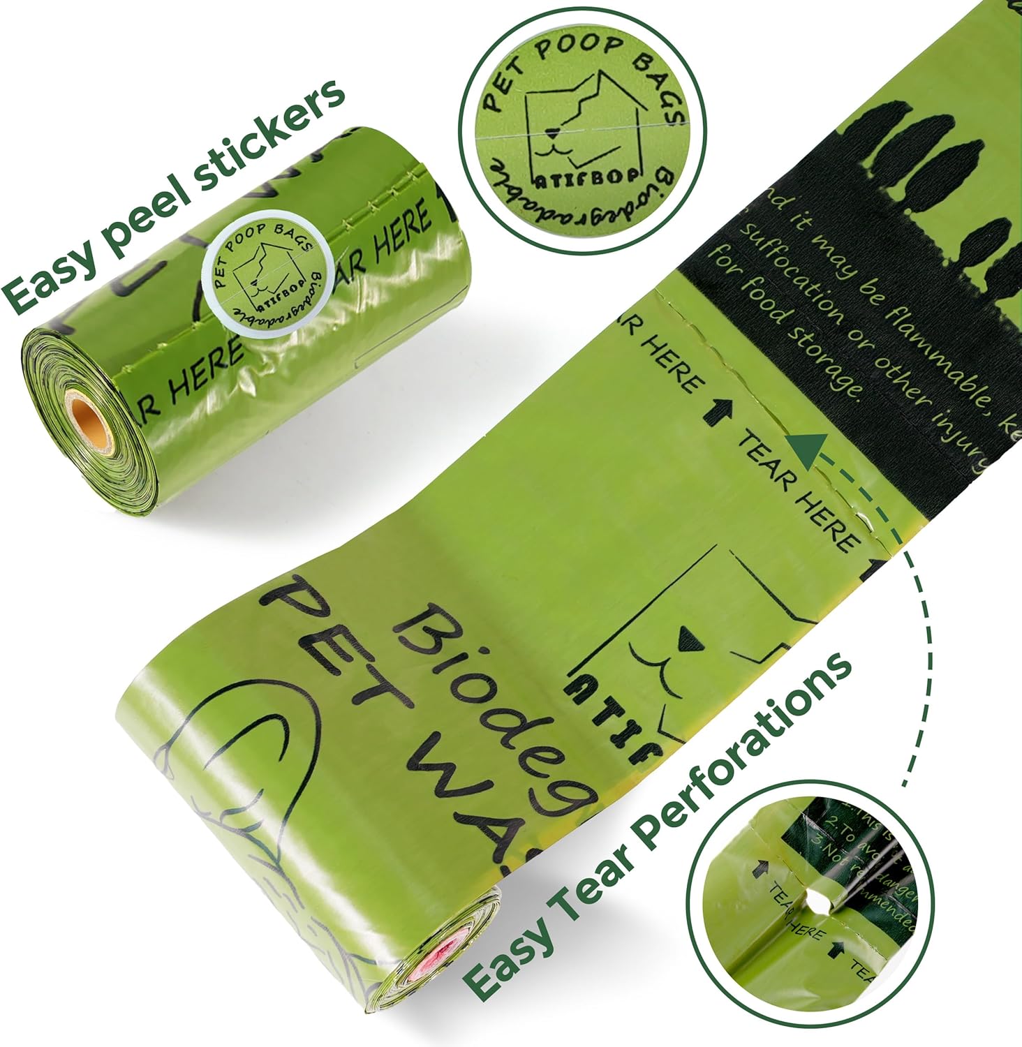 • BIODEGRADABLE POOP BAGS: Take your part in saving the planet by using ATIFBOP dog poop bag! Our poop bags are BPA free. Packaging and roll cores are recyclable. The dog poop bag rolls will naturally break down to protect the planet where your fur friends lives.