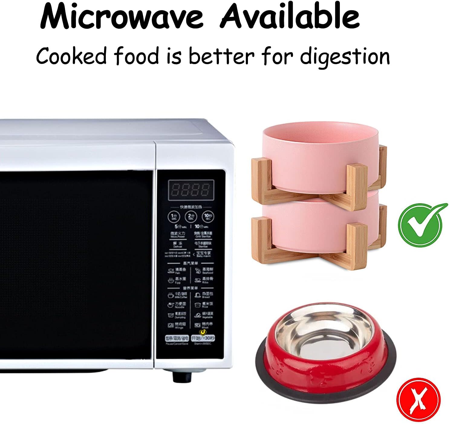 • DISHWASHER MICROWAVE SAFE - Ceramic pet bowls is made of Porcelain Ceramic with wood frame to keep from sliding on the floor. Ceramic cat dog bowls are high temperature ceramic, non-toxic durable. and the cat dog food water bowls conveniently dishwasherable so it can be easily cleaned. No Fuss.
